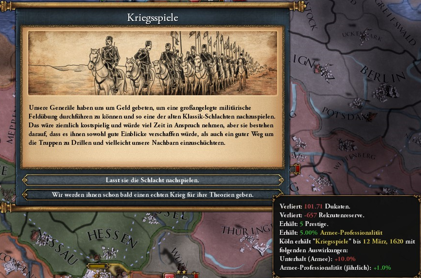 Anfang des Jahres 1610 erbittet die Generalität größere Geldsummen, um Anhang von Kriegsspielen Manöver zu üben, um die Schlagkraft der Kölner Armee weiter ausbauen zu können.