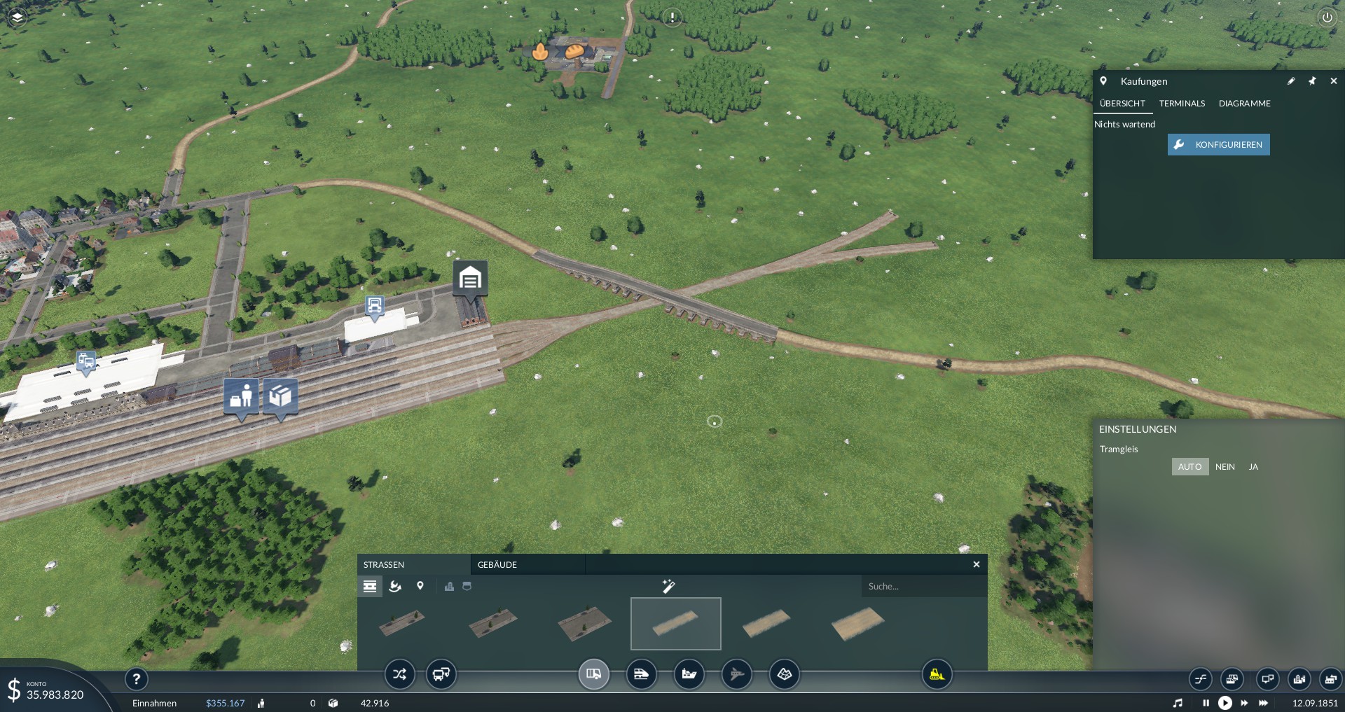 Hier nun ein paar Bilder von meiner Karte, die noch längst nicht komplett erschlossen ist und noch einige Städte auf Güter warten. Flughäfen fehlen noch komplett auf dieser Karte.