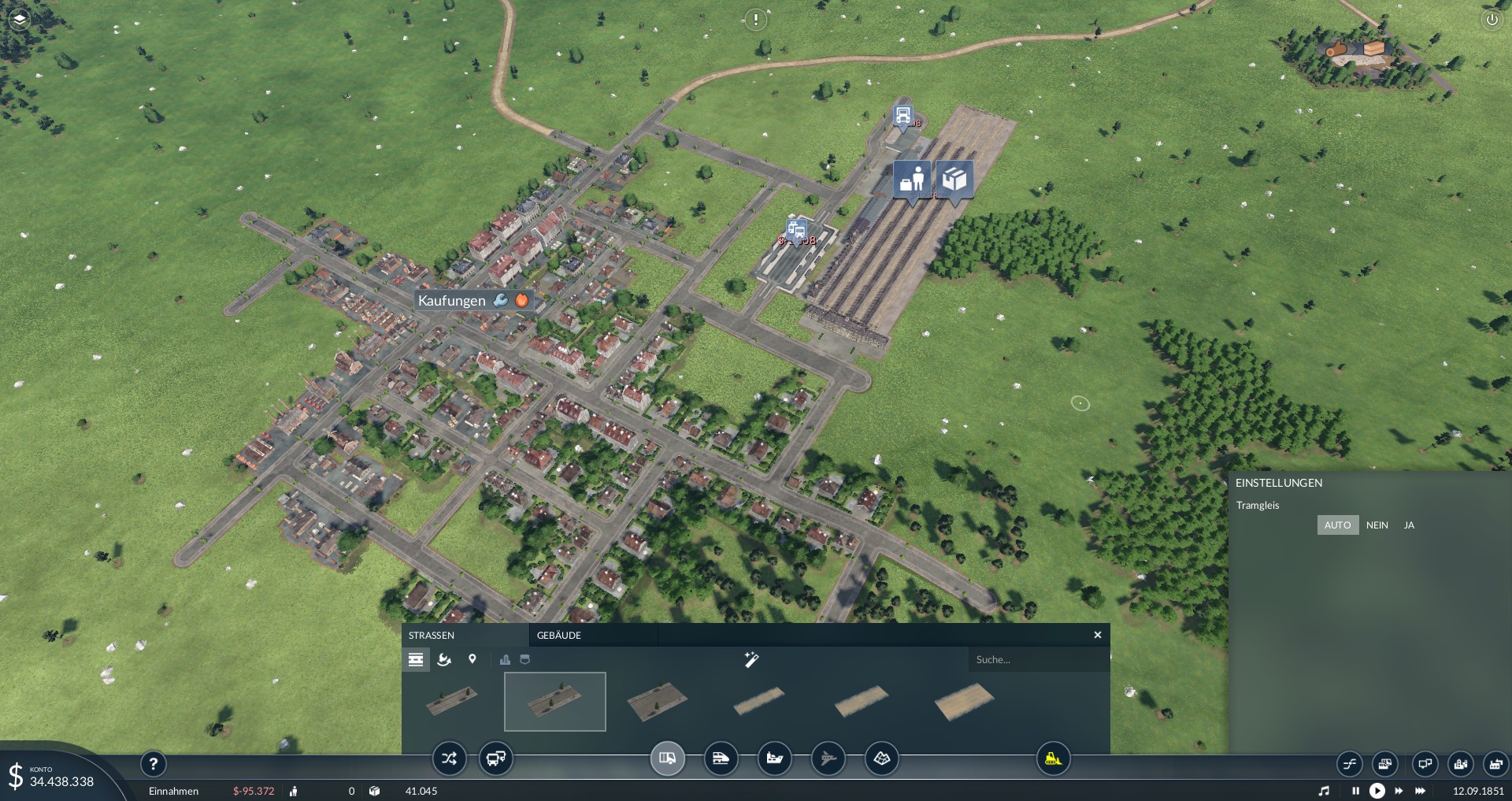 Allerdings habe ich mir angewöhnt alle straßen auf denen ich eine straßenbahn fahren lasse zu verbreitern... Dabei gehen natürlich leider gebäude zu bruch... Aber das verbreitern hat den vorteil das in der stadt keine staus entstehen da die haltenden bahnen einfach überholt werden können. Das ist auch wichtig da staus den wachstum der stadt minimieren... Ein genauso großer faktor wie emmisionen.