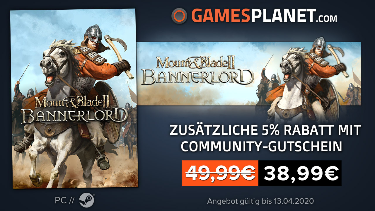 Achtung: Kunden, die bei Gamesplanet zuvor einen der älteren M&B-Titel gekauft haben, bekommen automatisch einen anderen und höheren Rabatt im Warenkorb angerechnet. Unser Community-Gutscheincode lässt sich damit nicht kombinieren. In solchen Fällen empfehle ich, unseren Code nicht zu benutzen und stattdessen das normale Angebot von Gamesplanet zu wählen, da dies das günstigere ist. Allerdings würde ich mich natürlich freuen, wenn ihr auch in diesen Fällen meinem Shoplink