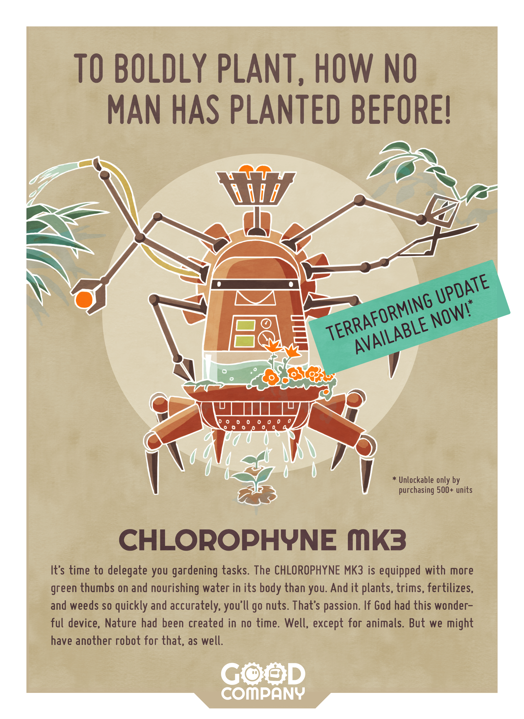 "Good Company - A Corporate Machinery Simulator" ist ein charmanter Mix von Wirtschaftssimulation und Aufbaustrategie, der uns in die Silicon-Valley-Szene der 1970er/1980er Jahre führt. Unser Startup baut Roboter und hofft, mit klugen und smarten Produkten die Welt zu verbessern.
