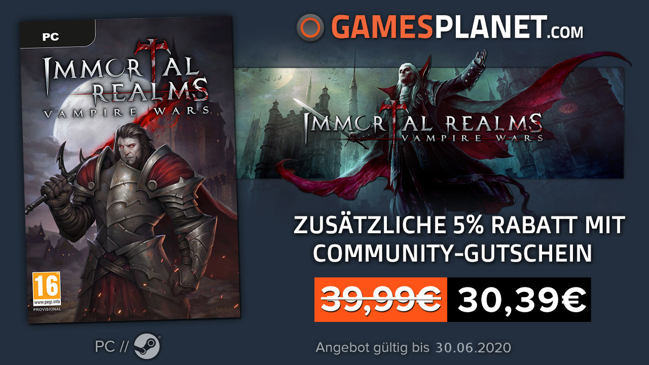 Vormerken, bitte! 9. August. 18.00-21.30 Uhr. Immortal Realms: Vampire Wars im Preview Live Let's Play! Wenn ich das richtig sehe: weltexklusiv. 8-)