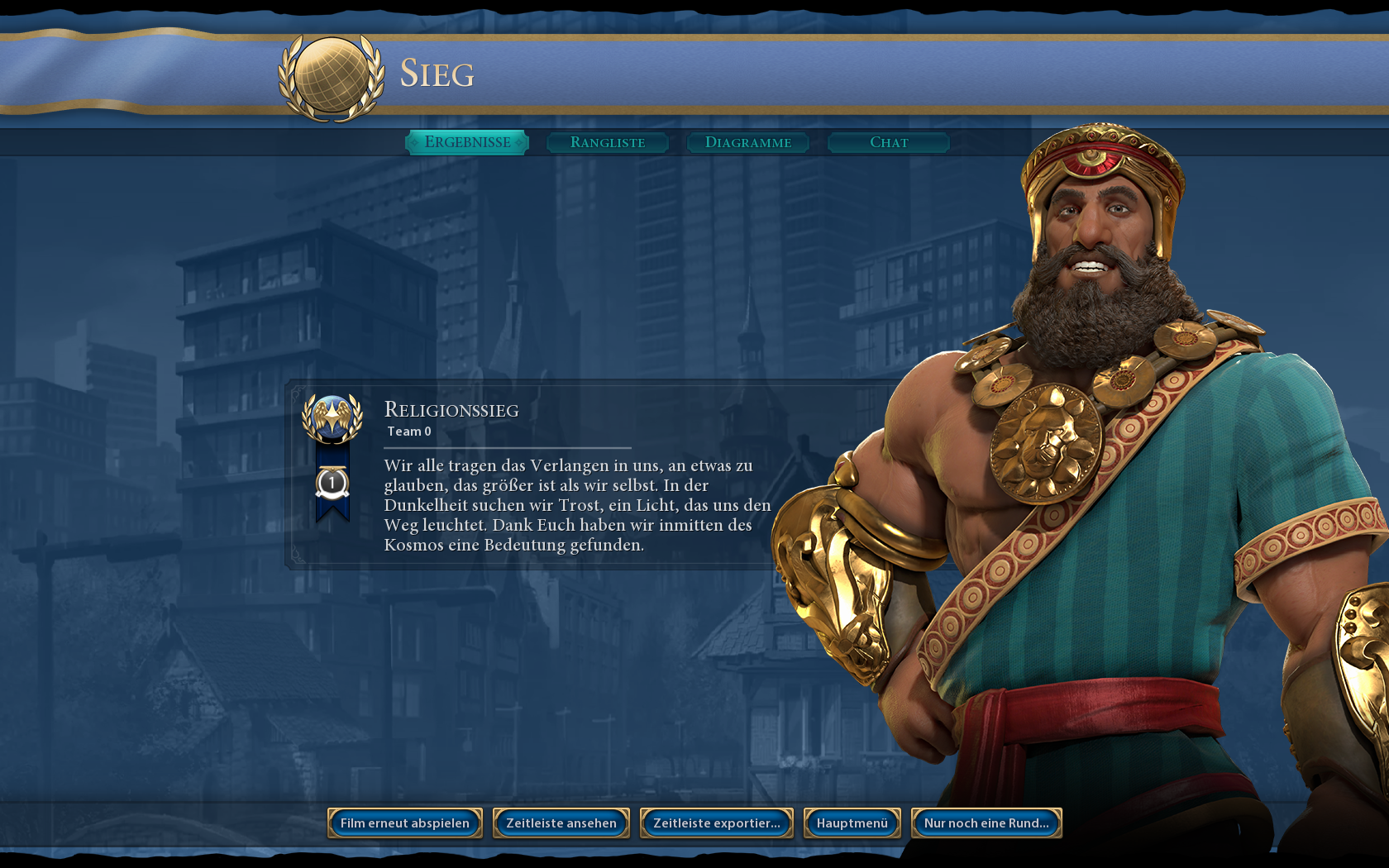 Leider hatte es zu dem Zeitpunkt schon einen Spieler und eine Religion ausgelöscht. Sehr ärgerlich! (Ägypten) Auch war der Spanier kurz vor der Auslöschung. Zu meinem Ärger wurde er kurz vor Schluss durch Loyalität besiegt und 42 Auslandstouristen waren futsch.
