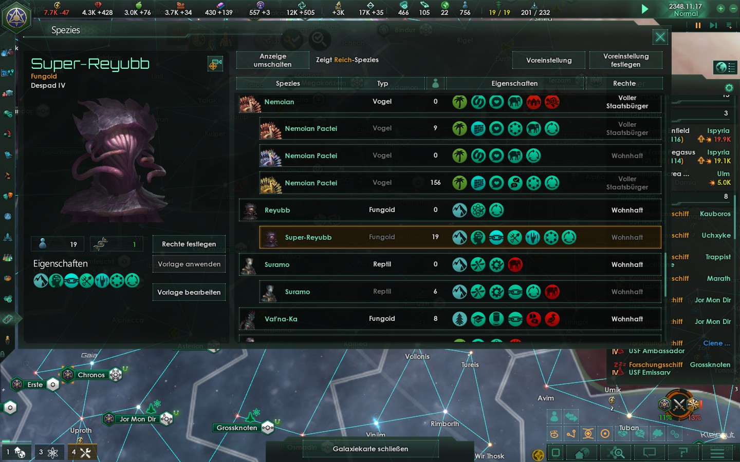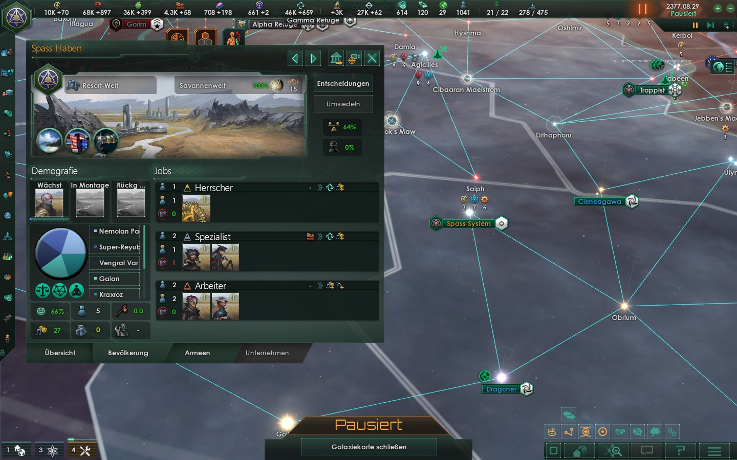 Und jetzt einen Hinblick zu den Welten die dank der "kombinierten und erfolgreichen Flottenmanövern zusammen mit Ihren Nachbarn" freigegeben wurden. Und die Eröffnung der Autobahn möglich machten als Knotepunkt.