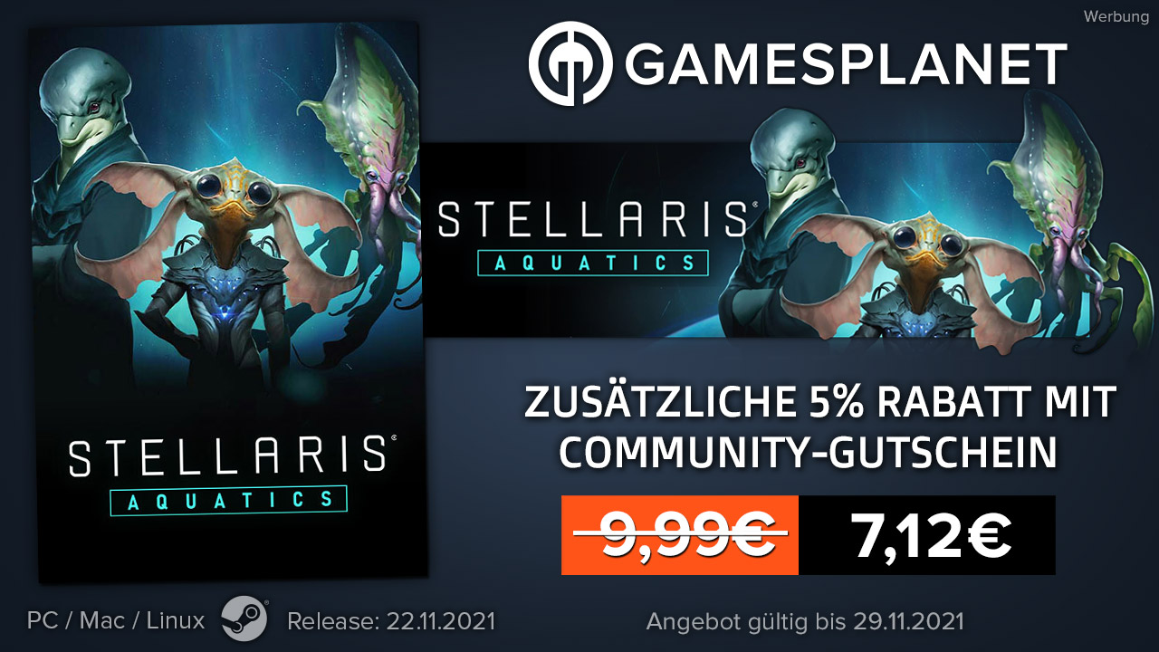 Lebe als eine seefahrende Zivilisation und durchfahre die Weiten der Galaxis mit dem bisher stimmungsvollsten Stellaris-Paket: dem Aquatics Species Pack! Lasse eine Welle neuer, konfigurierbarer Optionen für dein Imperium durch das Sternenmeer von Stellaris rollen und erlebe neue Spezies-Porträts, ein neues Schiffset, neue Ursprünge und mehr!