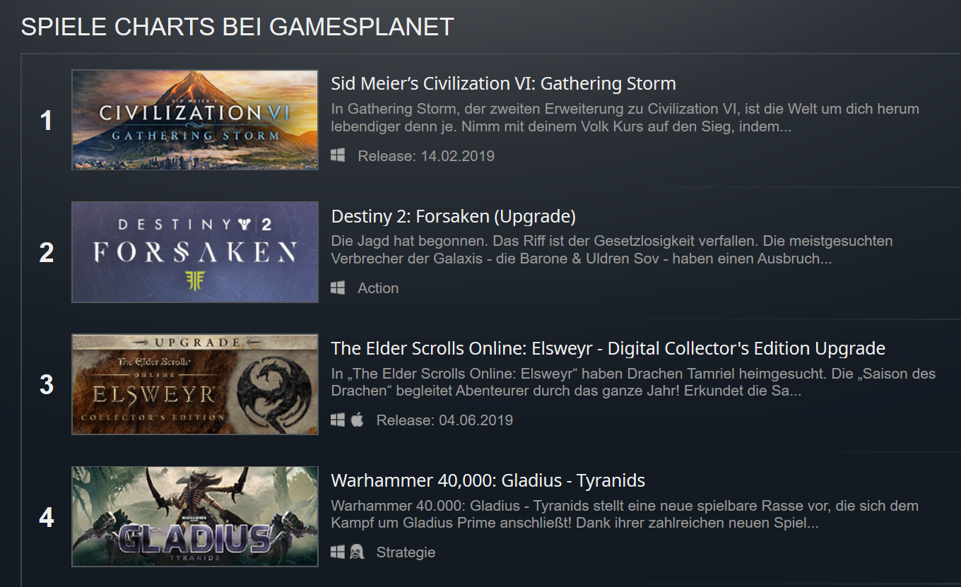 Lorenz Ruhmanns Warhammer 40.000 Gladius am 20.07.2019 in den Gamesplanet Charts.PNG