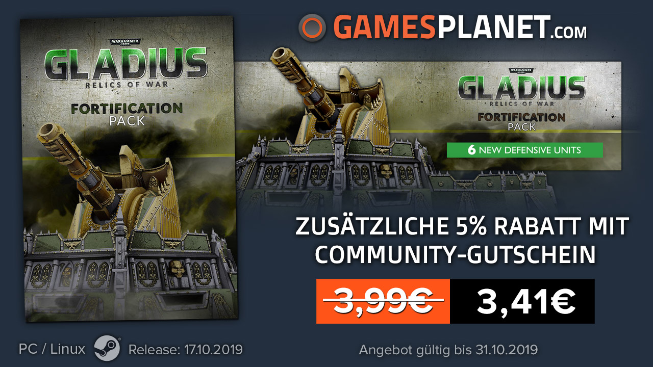Gerade erschienen: Warhammer 40,000: Gladius - Fortification Pack, ein neuer DLC für Gladius. Eine Erweiterung, die jeder Fraktion eine neue defensive Einheit bringt.