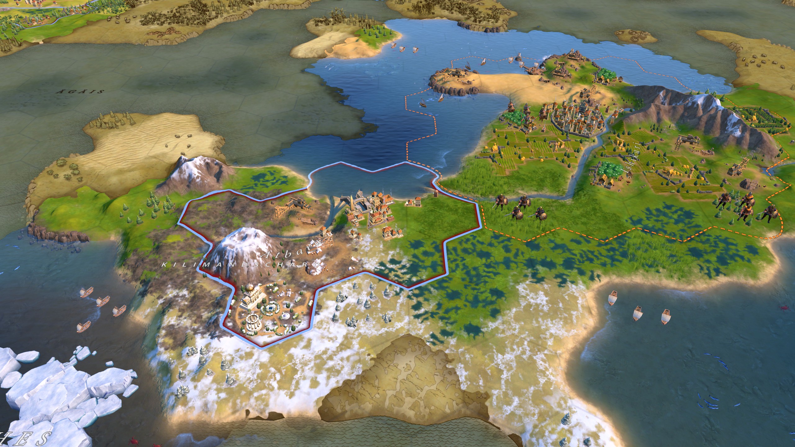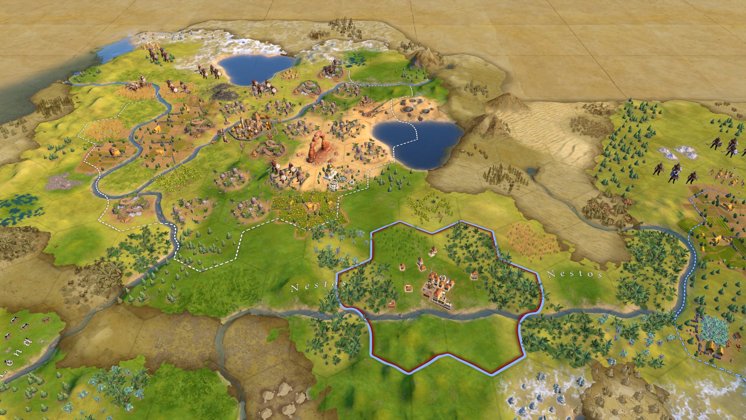 Mit Diplomatenliga holte ich mir rasch den Suzären-Titel der entdeckten Stadtstaaten um mehr von der Karte sehen zu können und die beiden Siedler siedelten an den jeweiligen Naturwunder auf der östlichen Landmasse an.