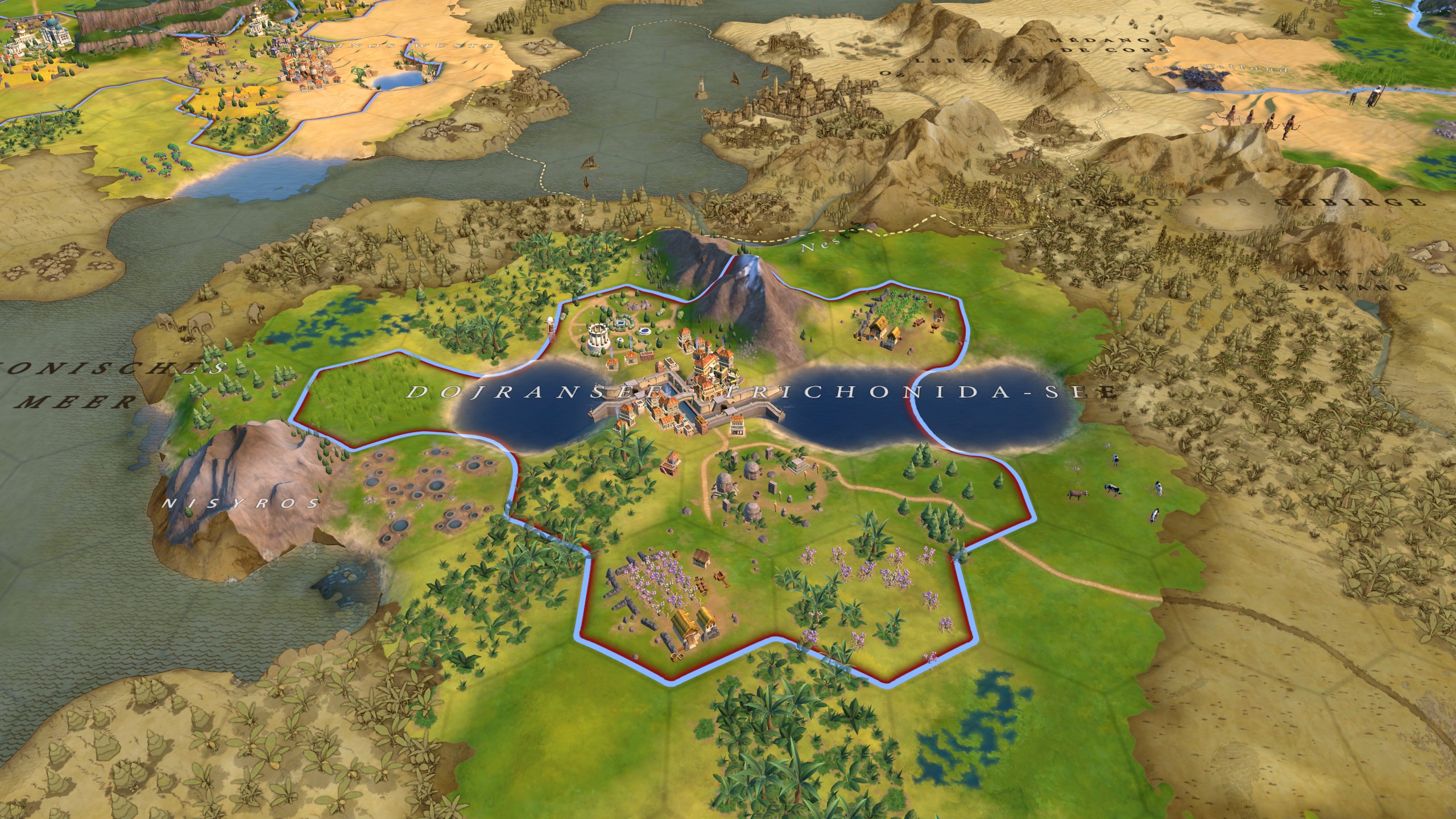 Ich dachte auch daran eine dritte Stadt SÖ vom Wunder neben der Wüste zu platzieren, doch als Eisen aufgedeckt wurde war ich mir da nicht mehr so sicher ':D. Zum Glück hatte ich zu dem Zeitpunkt mein Campus in der Hauptstadt schon errichtet ^^.