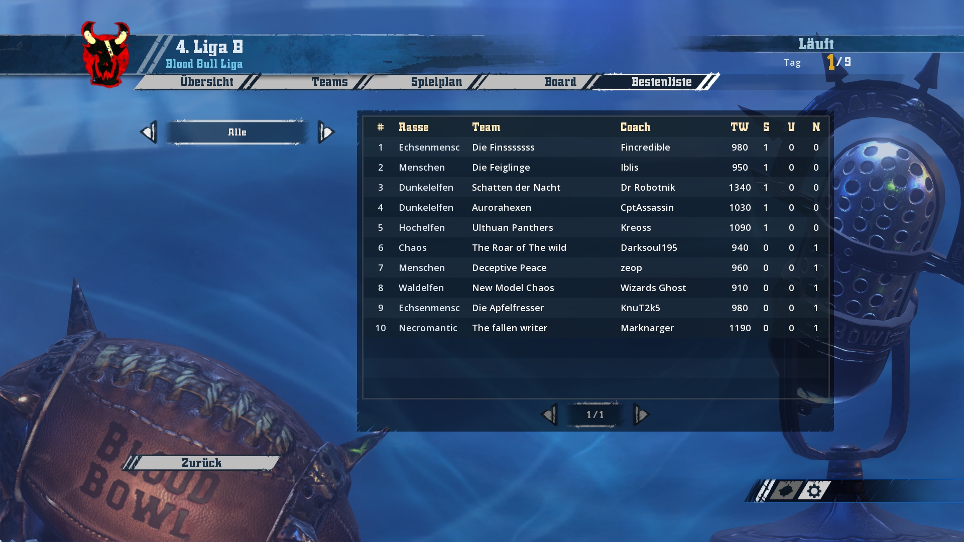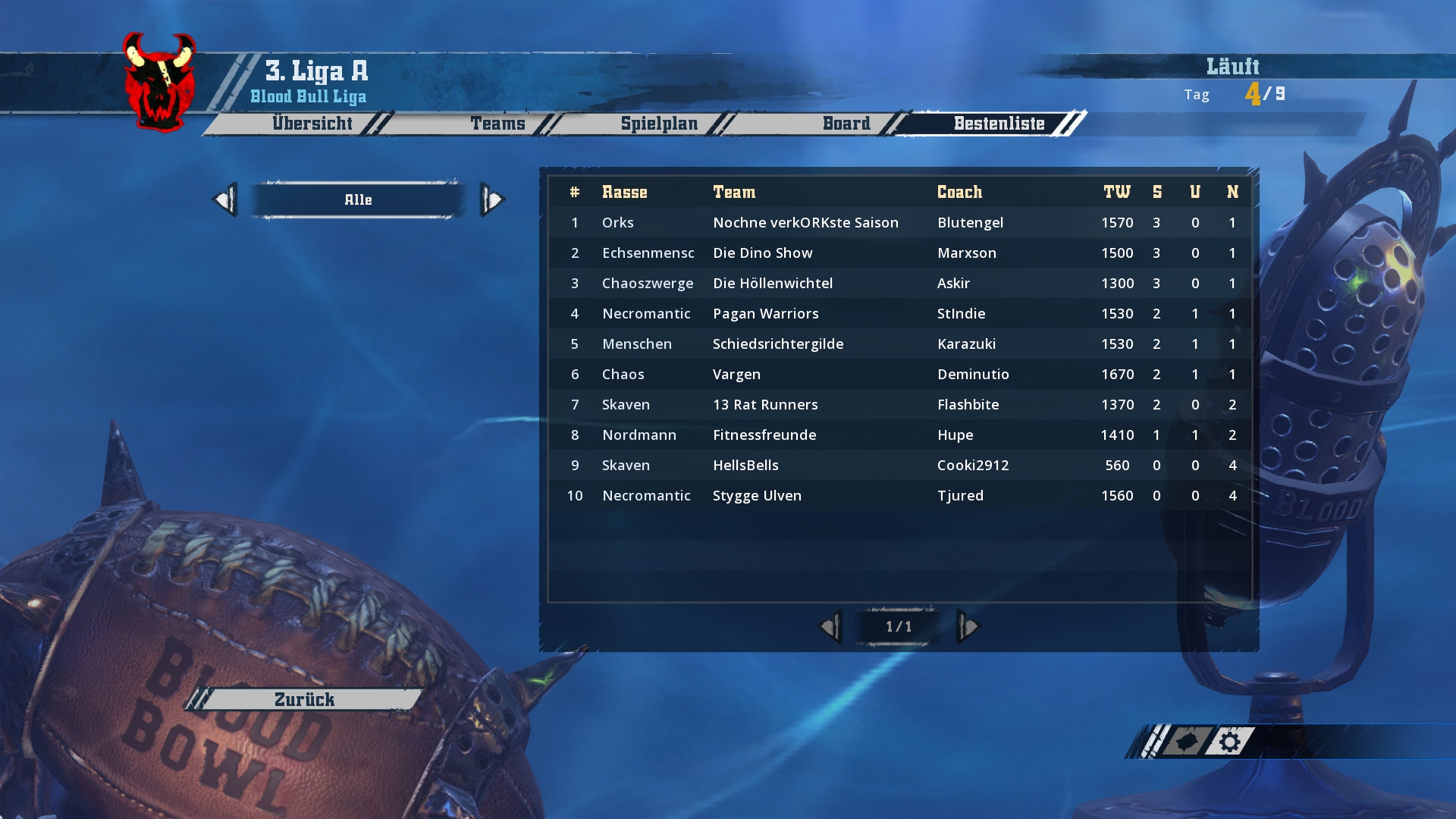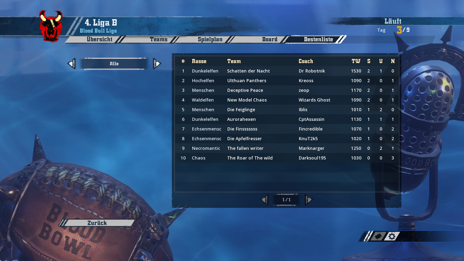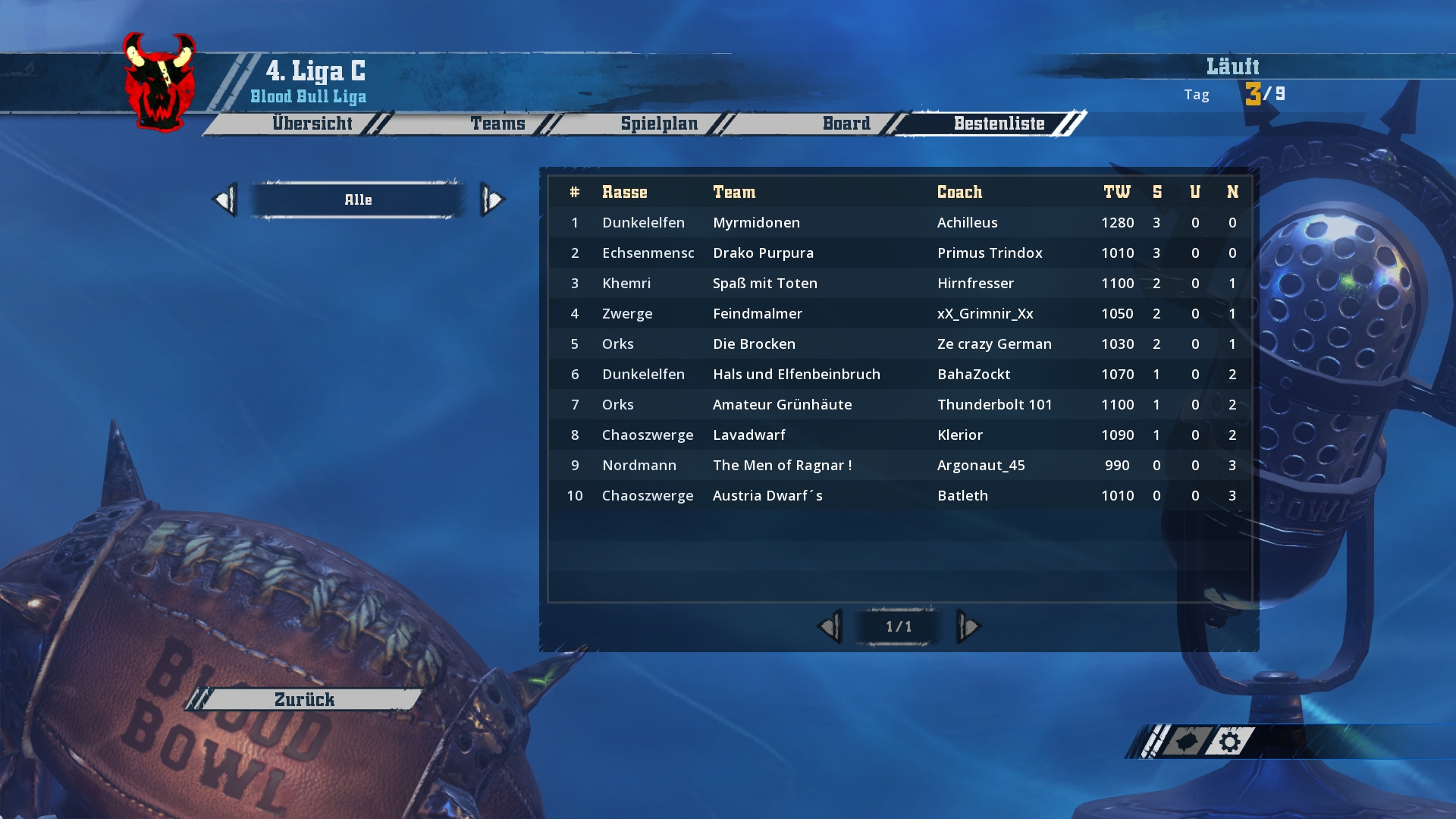 Ich werde hier und jetzt mit den Screenshots von Spieltag 1-3 beginnen und bis zum Wochenende in zwei weiteren Schritten den aktuellen Stand aufholen