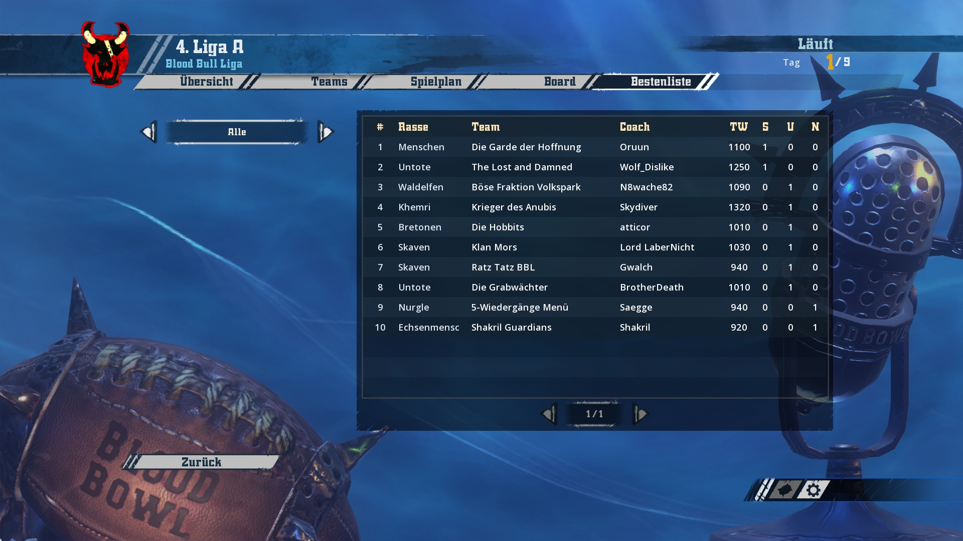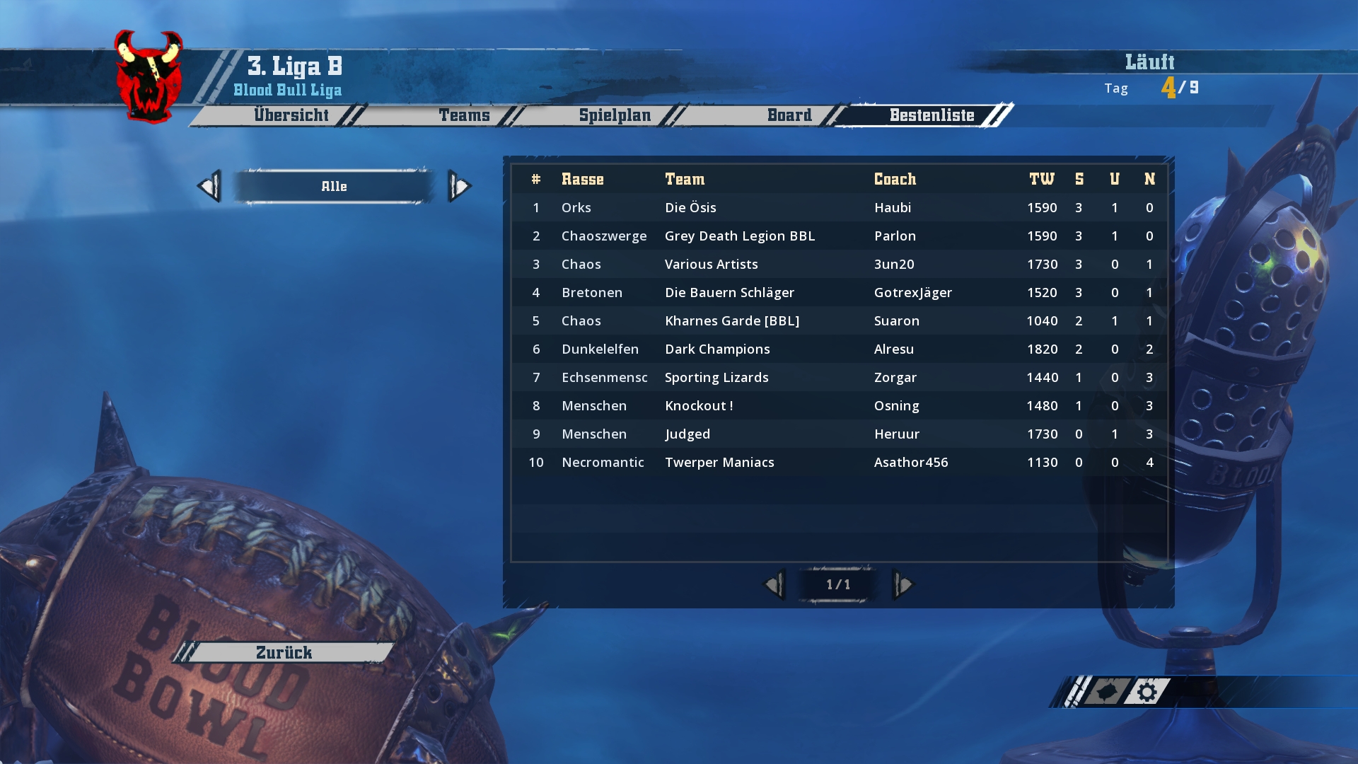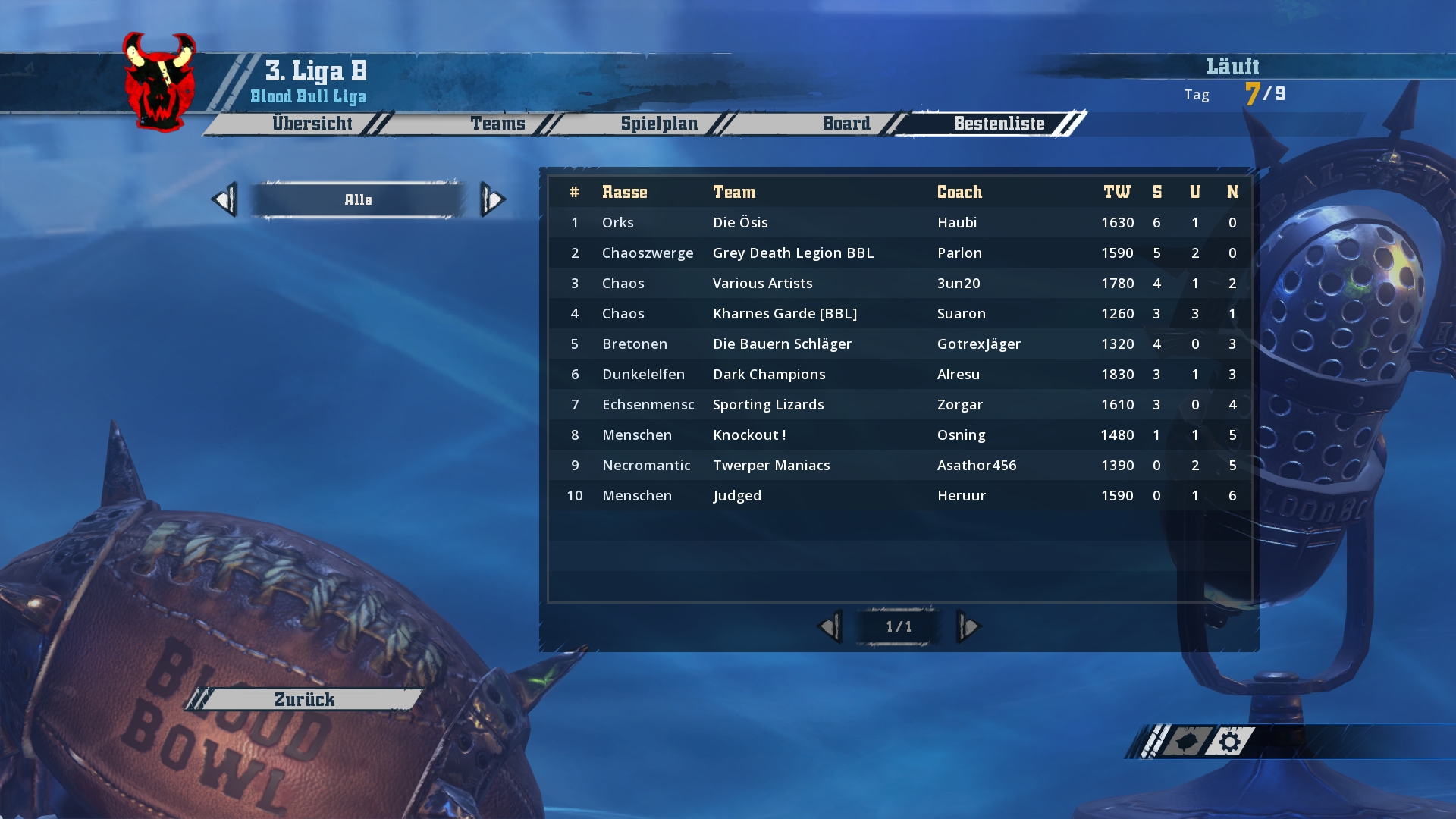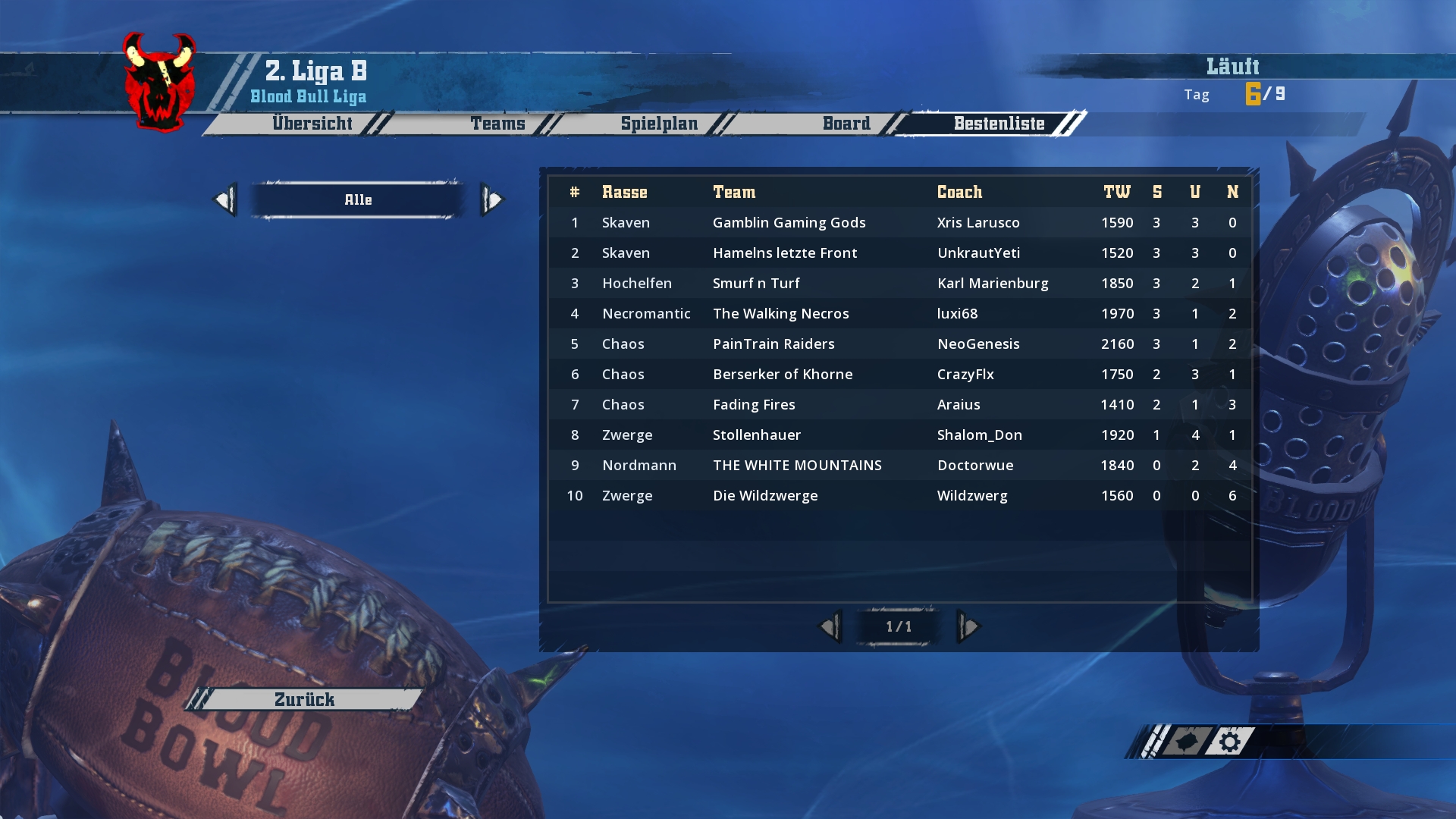 Ich werde hier und jetzt mit den Screenshots von Spieltag 1-3 beginnen und bis zum Wochenende in zwei weiteren Schritten den aktuellen Stand aufholen