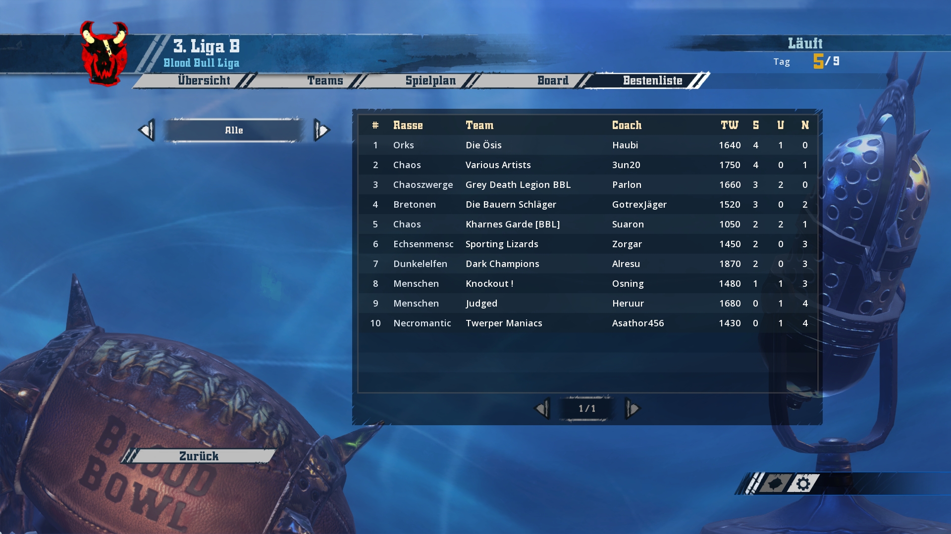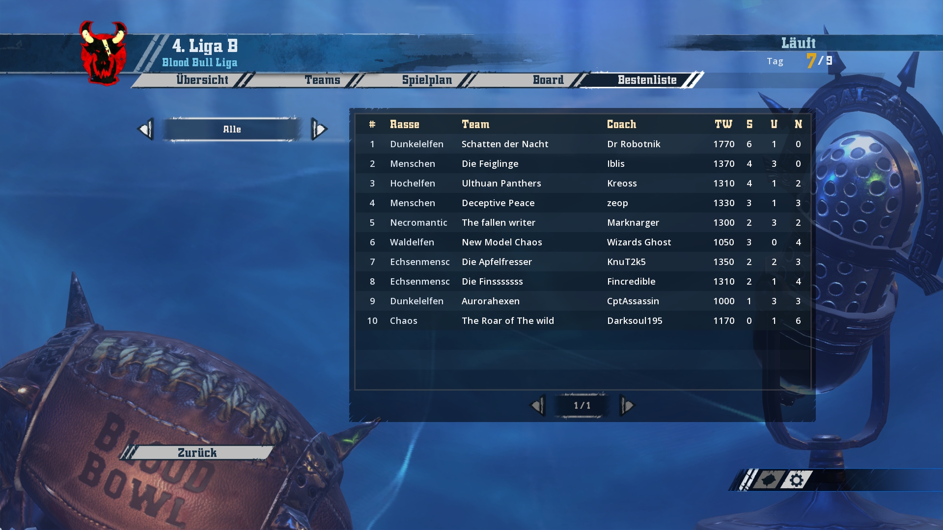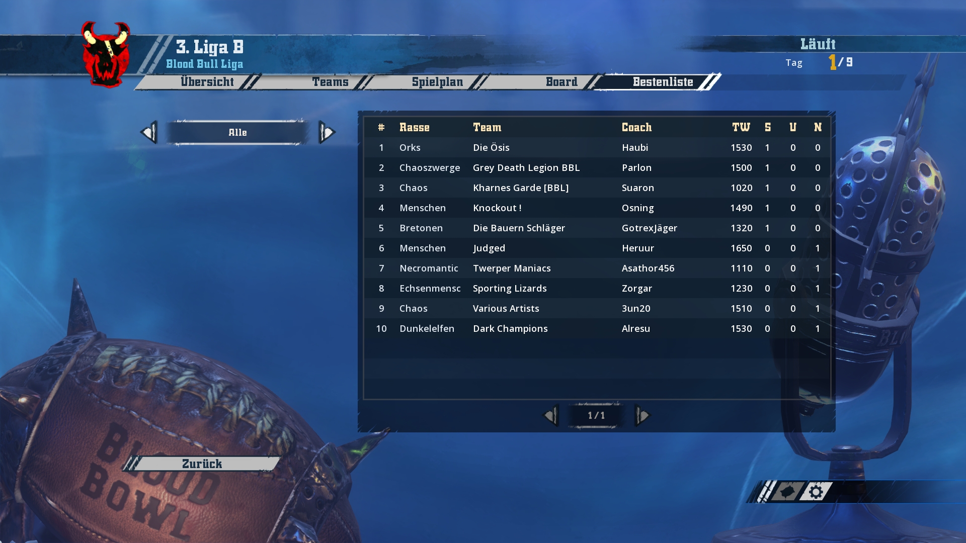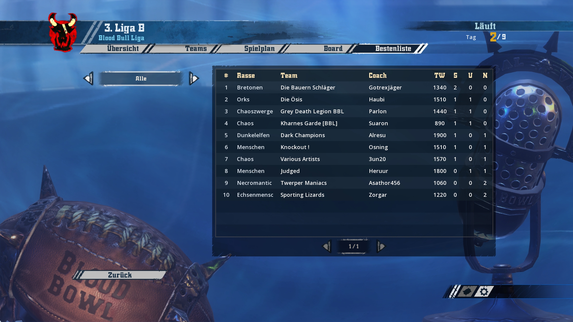 Ich werde hier und jetzt mit den Screenshots von Spieltag 1-3 beginnen und bis zum Wochenende in zwei weiteren Schritten den aktuellen Stand aufholen