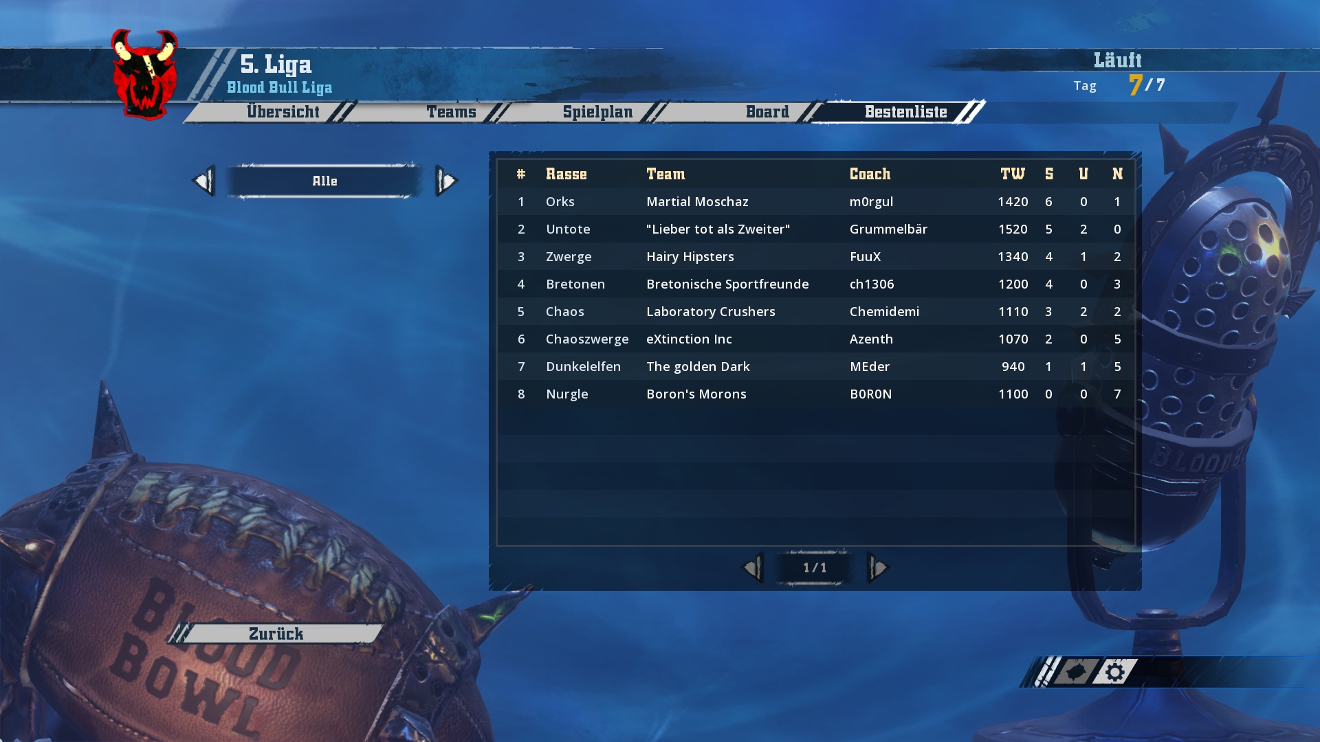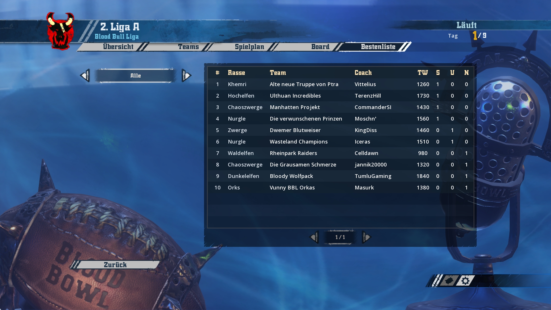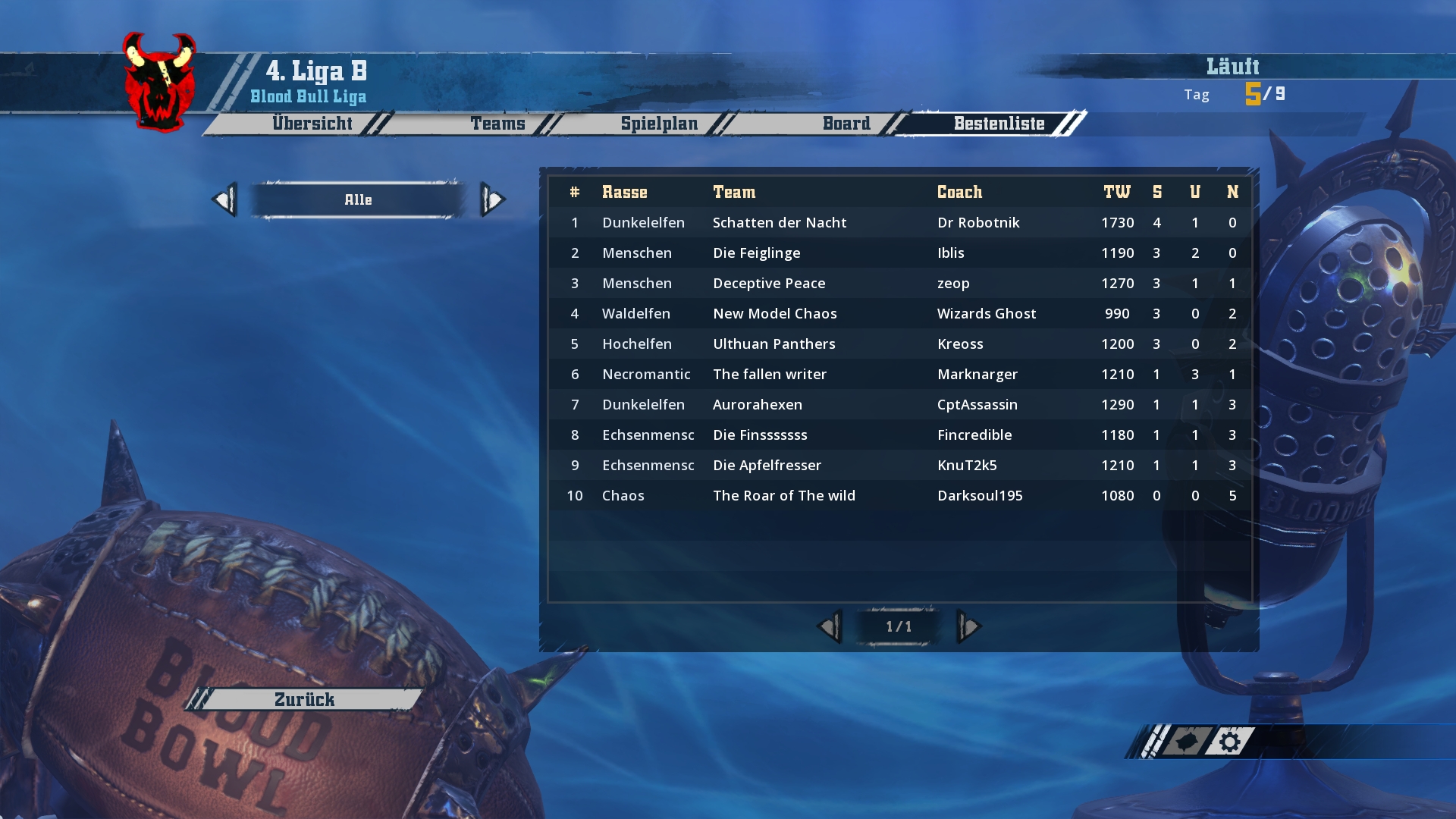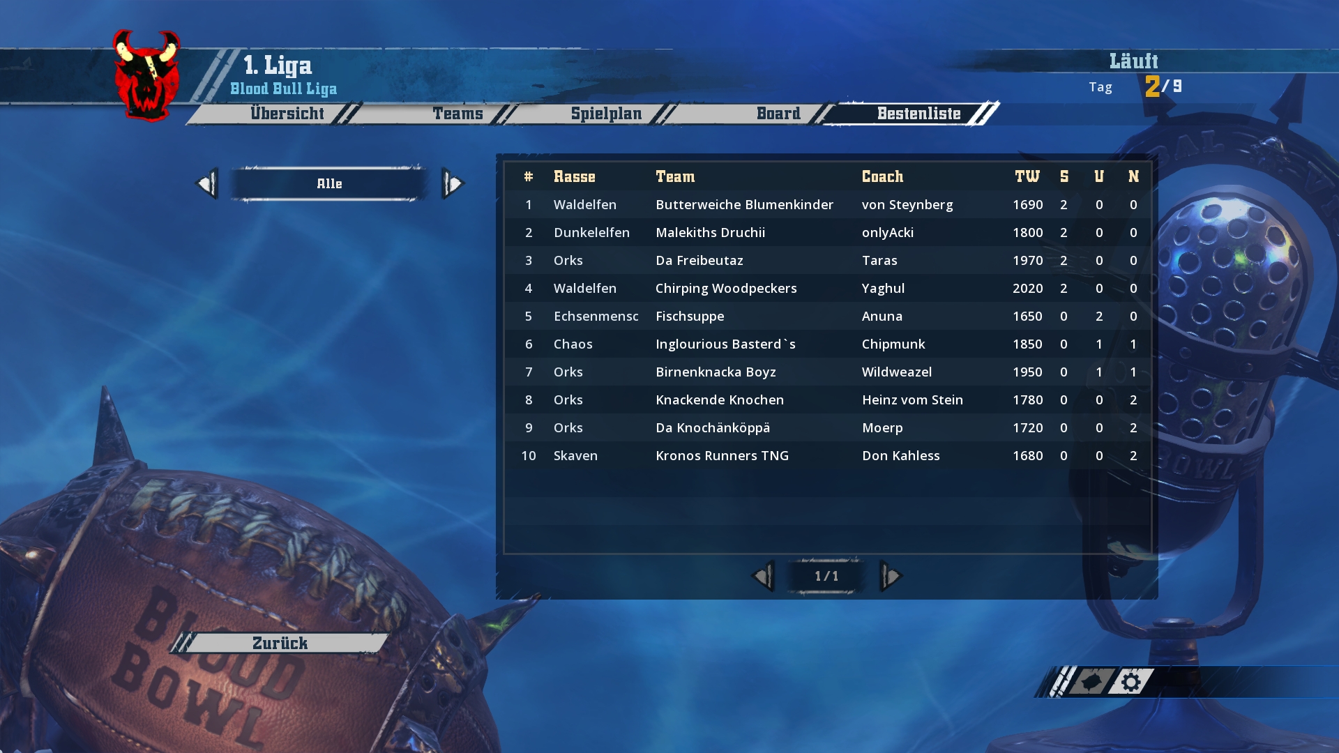 Ich werde hier und jetzt mit den Screenshots von Spieltag 1-3 beginnen und bis zum Wochenende in zwei weiteren Schritten den aktuellen Stand aufholen