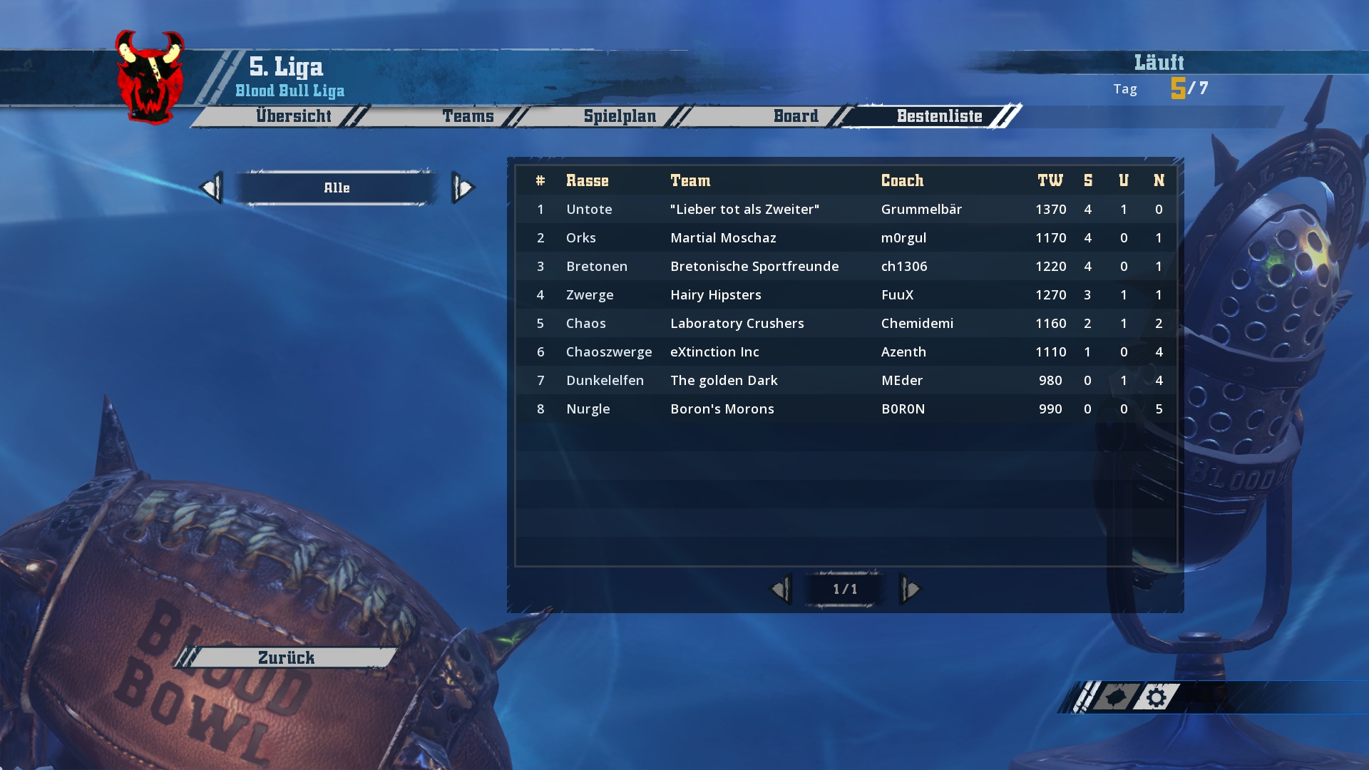 .. auch wenn es erst jetzt kommt, möchte ich endlich beginnen in diesem Faden die Ergebnisse und Tabellen der 5. Saison für all jene Interessierten zu präsentieren, welche nicht selbst in der 'Blood Bull Liga' aktiv sind und dennoch die 5. Saison unseres großartigen Ligasystems verfolgen wollen ;)
