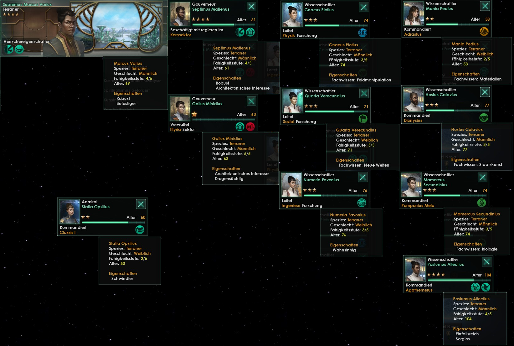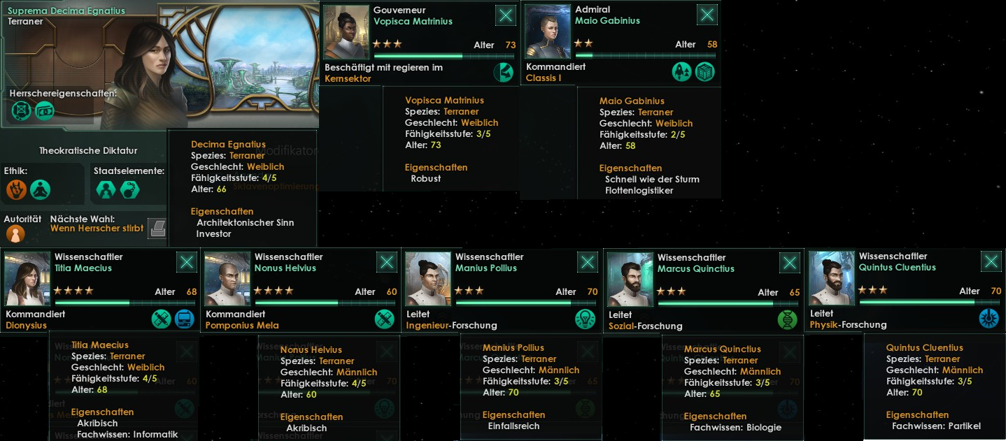 "Gaia!", sprach er mit kräftiger Stimme. "Zeige mir die Profile aller aktuellen Ratsmitglieder auf und deren aktuelle Position im Rat." Gesagt getan, auf einem Monitor erschienen die Akten jedes einzelnen Ratsmitglieds. "Interessant!", stellte der junge Mann erstaunt fest. "Anscheinend besteht der Rat aus zwei Gouverneuren, einer Admirälin und sieben Wissenschaftlern." Den Informationen nach wird der Kernsektor von Gouverneur Septimus Matienus regiert, wärehnd Gouverneur Gallus Minidius den Illyria-Sektor verwaltet. Zu groß ist der Raum der vergessenen Kinder geworden, als dass diese Aufgabe von nur einer Person gestemmt werden könnte. Das Oberkommando über die Streitkräfte der Terraner hat Admirälin Statia Opsillius inne. Während die Aufgabenverteilung der drei bereits genannten Mitglieder klar ist, ist es bei den Wissenschaftlern etwas komplizierter. Im Laufe der Zeit haben sich die Forscher auf einzelne Bereiche spezialisiert. Jedes Forschungsprojekt wird von dem dafür fähigsten Wissenschaftler geleitet, während die anderen vier diese Projekte von ihren Forschungsschiffen aus unterstützen.