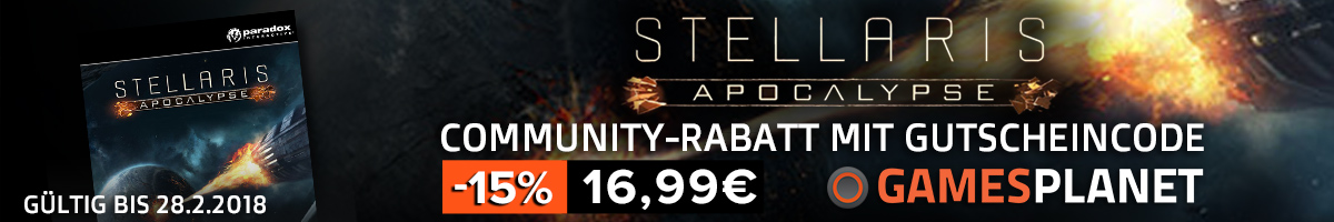 Bis zum 28.02.2018 einschließlich bekommt ihr mit dem Community-Gutscheincode WBSTODESSTERN einen Rabatt von 15% auf den Steam-Standardpreis über unseren Shoplink.