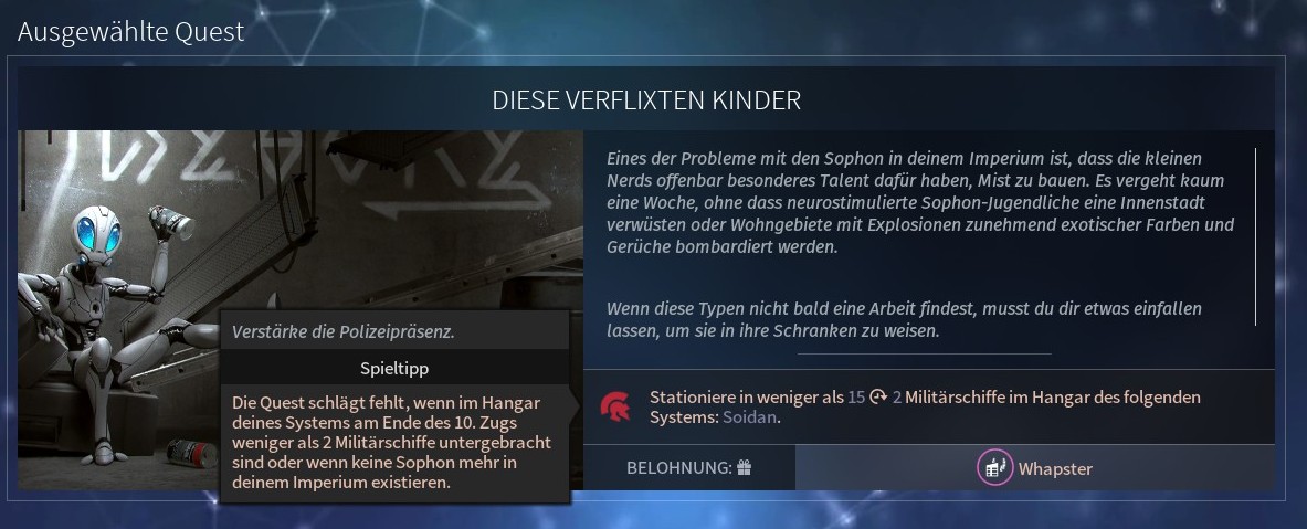 Es geht um die Fraktionsquest "Eine einsame Sonde - Teil 3" und um "Diese verflixten Kinder"
