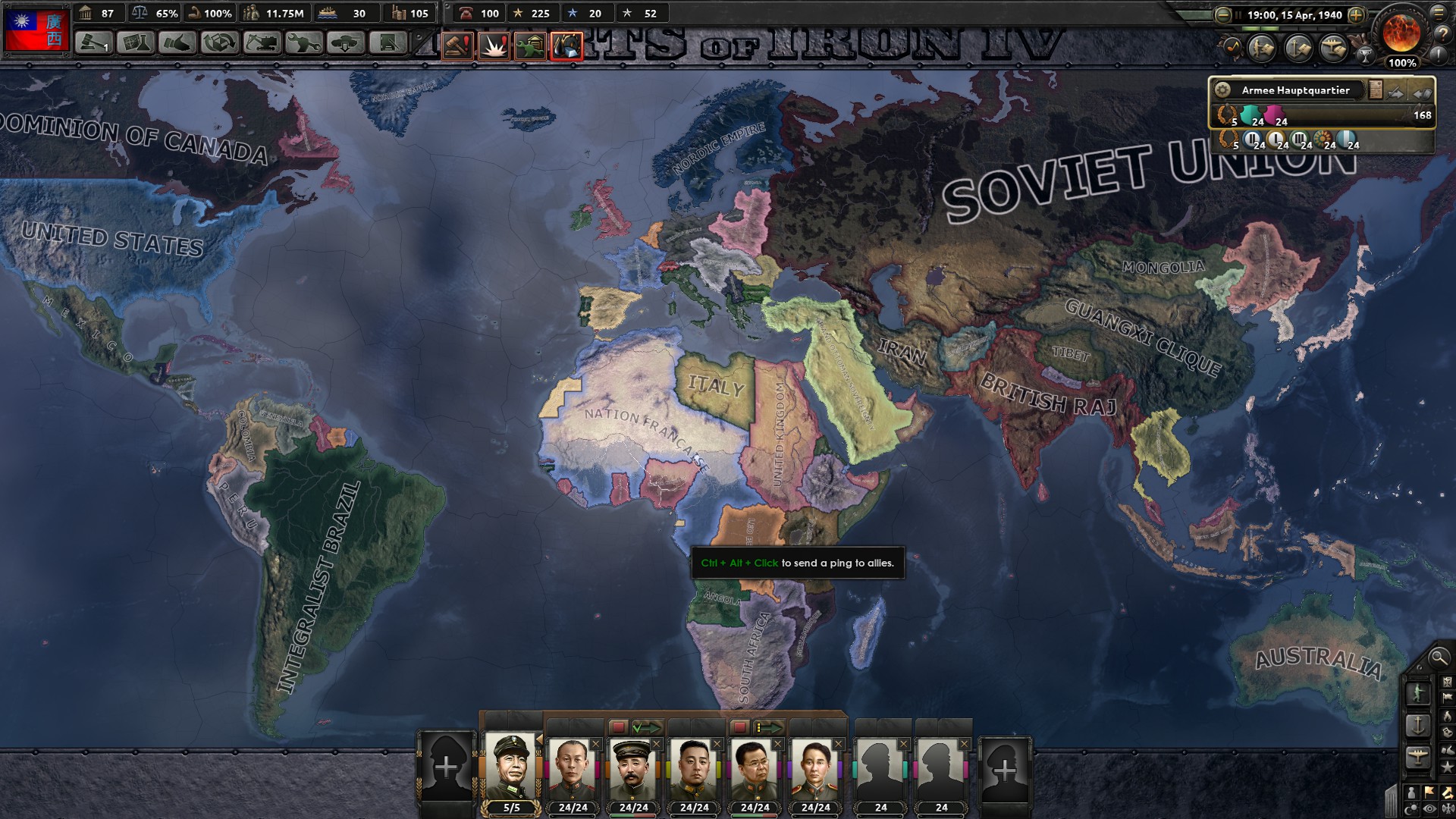 Willkommen liebe Generäle zu der neuen großen HOI 4 MP-Partie. Diese Partie verspricht ein besonderer Leckerbissen zu werden, denn die Freunde werden weniger, die Feinde dafür mehr.