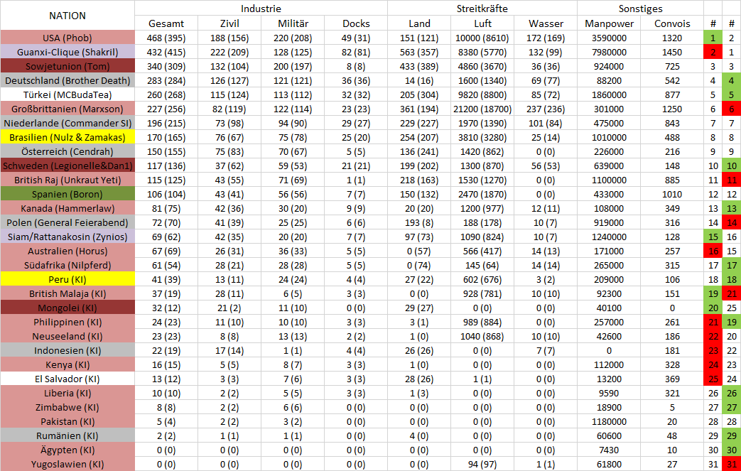 - Manche Länder haben einen kleinen Buff bekommen damit sie ihre Aufgaben zeitgerecht bewältigen können. Diese werden ebenfalls weiter unten aufgeführt und sind im Gesamtkomplex nicht spielentscheidend. (es bekommt keiner mal 100 Fabriken oder so).
