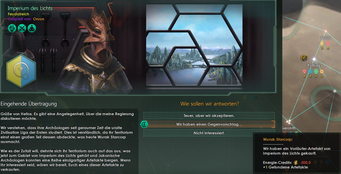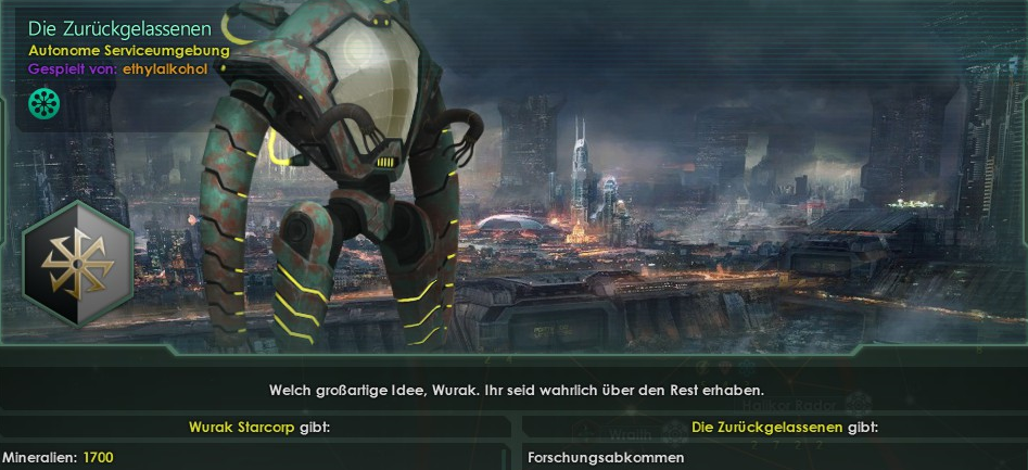 "Erneut gibt es viel von unseren Entdeckern zu berichten. Besonders Goldmagichsehr hat sich dieses mal selbst übertroffen. Sicherlich liegt es daran, dass er als Neuster der drei großen Entdecker noch liefern muss zu was er in der Lage ist. Und er hat geliefert. Im Tram Bodon - System hat er nicht nur die seltene Ressource Satramengas gefunden. Wissenschaftler Goldmagichsehr, ein selbsterklärter Gourmetkoch und Geschichtsfan, behauptet eine wichtige Entdeckung gemacht zu haben. Eine chemische Verbindung in den oberen Eisschichten mehrerer Regionen von Tram Bodon VII ist angeblich eng mit dem wurakischen Stellarsalz verwandt, einer wichtigen Zutat vieler traditioneller wurakischer Gerichte. Auf Wurak Gar hatte man es als erschöpft betrachtet. Schon lange ist spekuliert worden, dass das wurakische Stellarsalz auf unserer Heimatwelt ursprünglich gar nicht vorkam, sondern vor langer Zeit dorthin gebracht worden war. Die Entdeckung von Goldmagichsehr auf Tram Bodon VII scheint diese Theorie zu unterstützen. Allerdings verlässt er sich zum Beweis der salinischen Verbindung stark auf Eigenschaften, die in uralten Kochbüchern aus der Zeit vor der modernen Chemieforschung beschrieben werden.