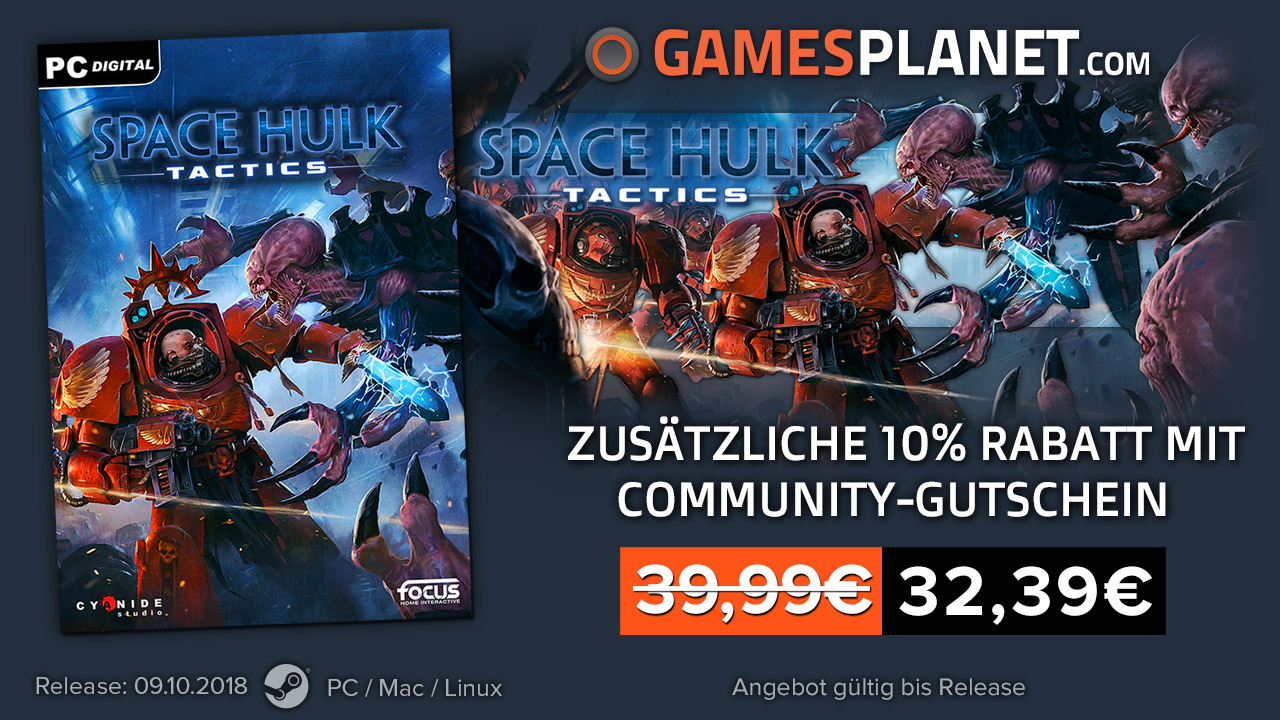 Bereits am 9. Oktober erscheint mit Space Hulk: Tactics eine PC-Umsetzung des Brettspiels Space Hulk aus dem Warhammer 40.000-Universum.