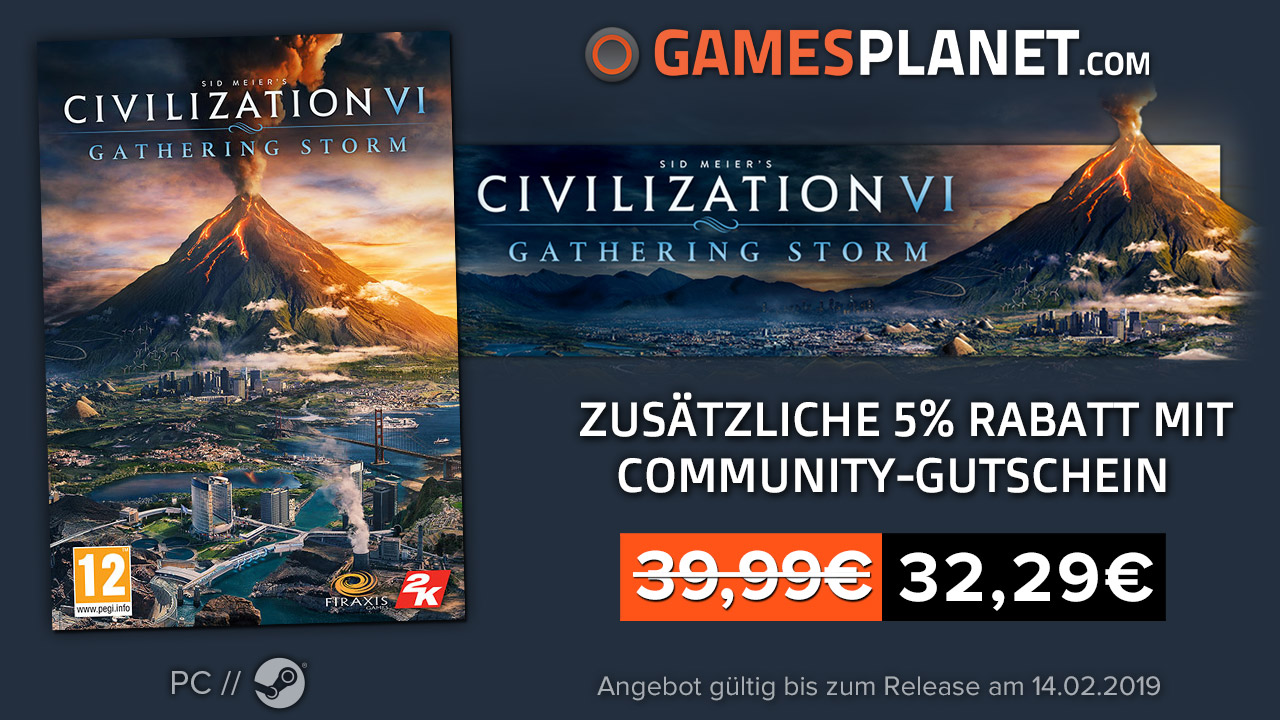 Ab sofort und bis zum 14.02.2019 einschließlich bekommt ihr mit dem Community-Gutscheincode STORMYDANIEL einen Zusatzrabatt auf den Rabatt draufgelegt, den Gamesplanet bereits ohnehin gibt. Verwendet dafür diesen Shoplink: