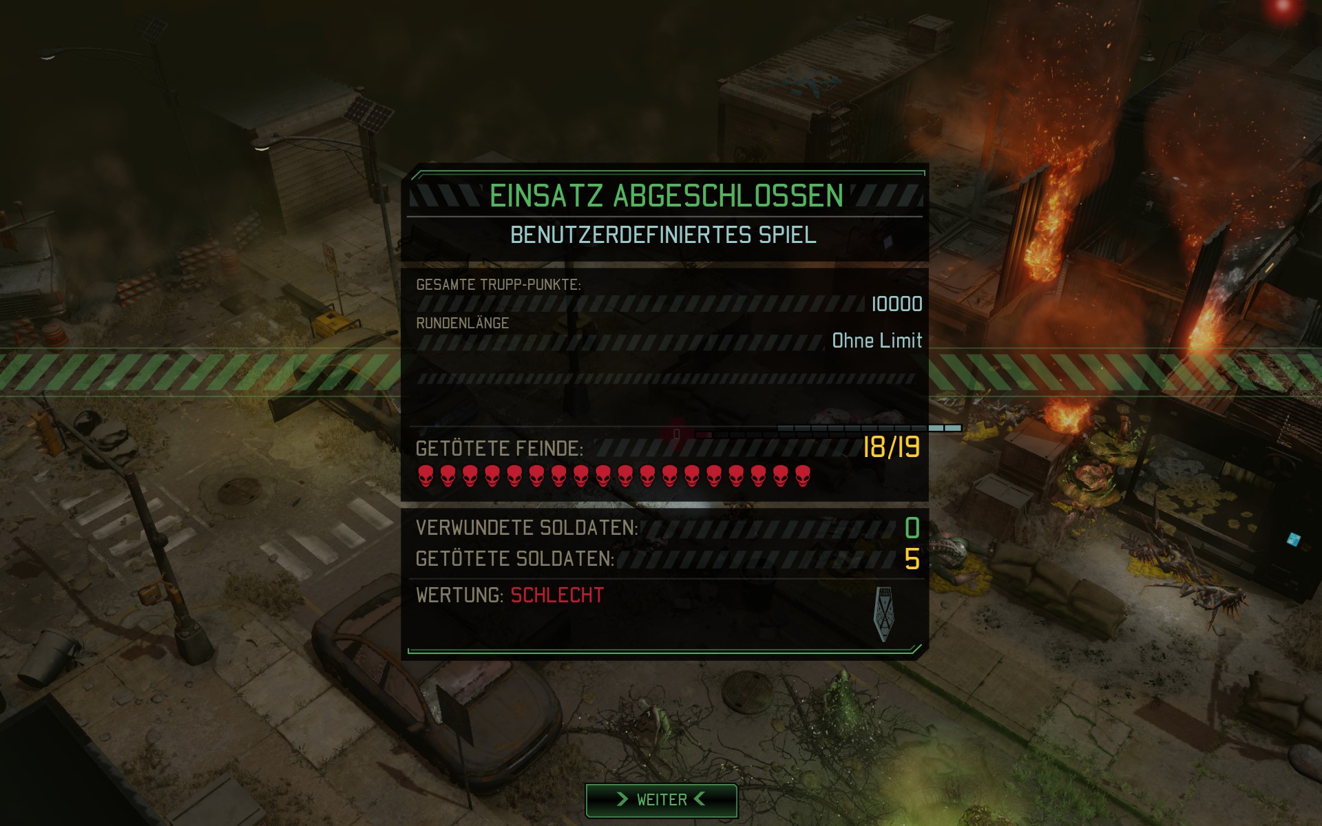 Am Ende stand nur noch eine einzige Einheit von mir :-! . Insgesamt sind 18 Einheiten gestorben, nachdem in dem Spiel neue Aliens aus der Biomasse von Toten geboren wurden. ^:)^ Ich huldige dem Bullismus ^:)^