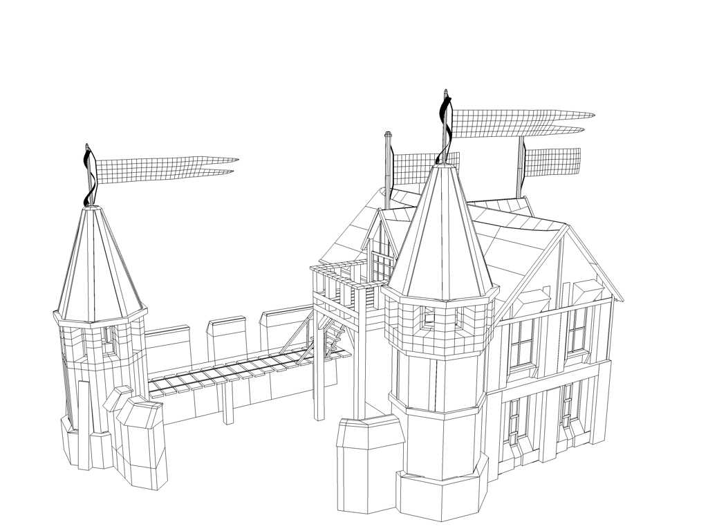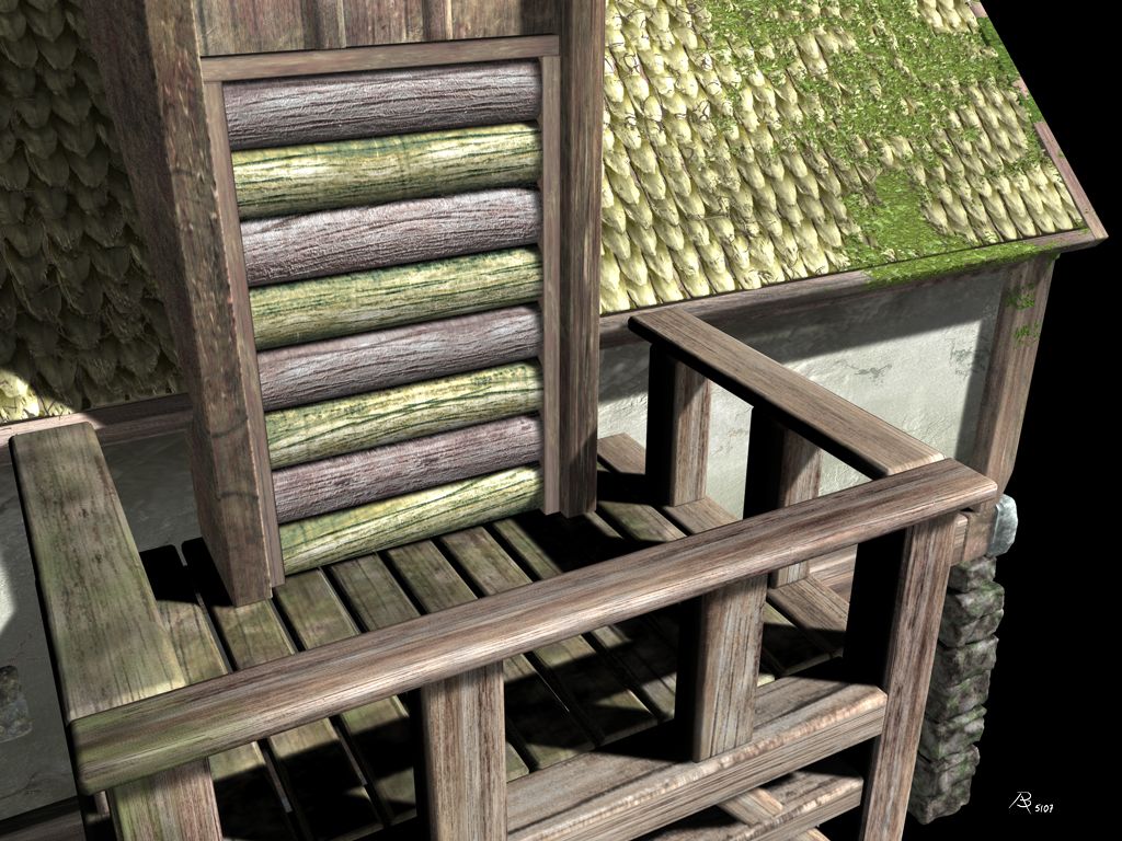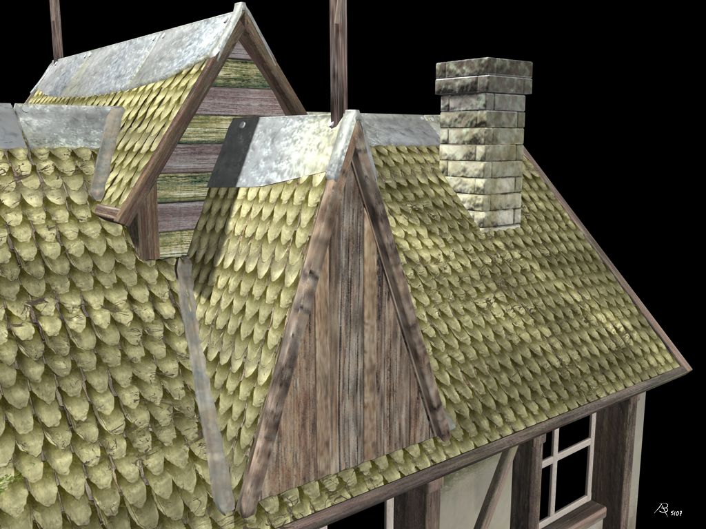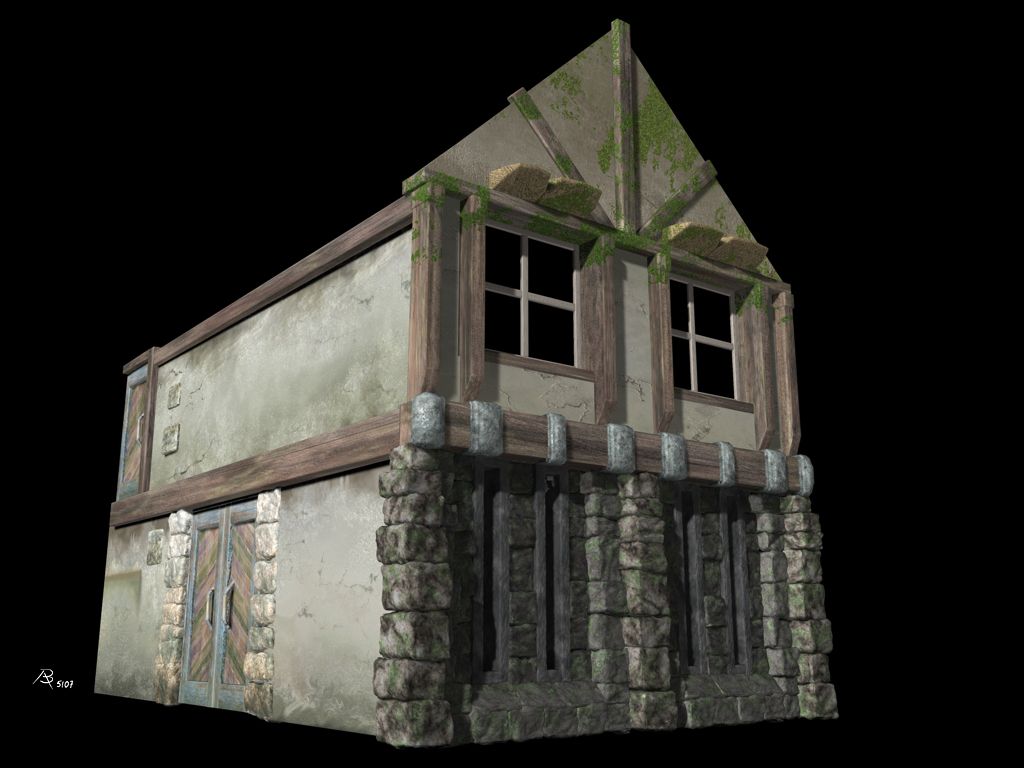 Was Du wohl als Eigenschattierung der Steinen interpretierst, ist lediglich die Farbgebung der Steintextur(en). Auf der nachfolgenden farbigen Version dieses Renderings kann man das besser sehen. Fotorealistisch sollte der 2007 entstandenen Gebäudekomplex (ein Wachhaus aus Anno 1701) übrigens nie werden. Das Rendering ist während der Kontruktionsphase des Gebäudes entstanden. Der Vollständigkeit halber füge ich hier weitere Renderings dieses Projektes bei. Warum ich die S/W-Abbildung überhaupt hier online gestellt habe, verrate ich am Ende...