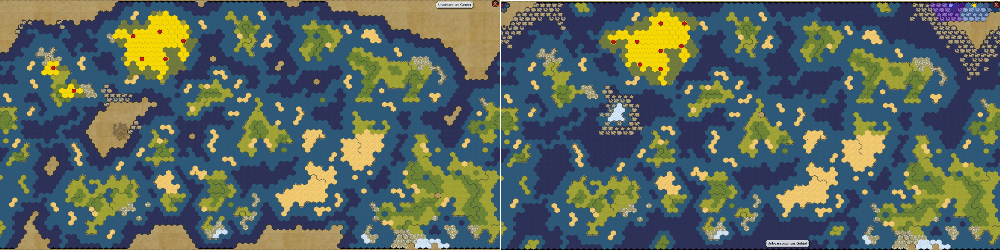 Eine Übersicht über die zwei verschiedenen Reiche auf denselben Kontinent mit Hilfe der Weltkarte, der führende des Kontinentes Wundii ist rechts zu sehen. Im Spoiler folgen dann weitere Bilder von dem aufgebauten Reich: