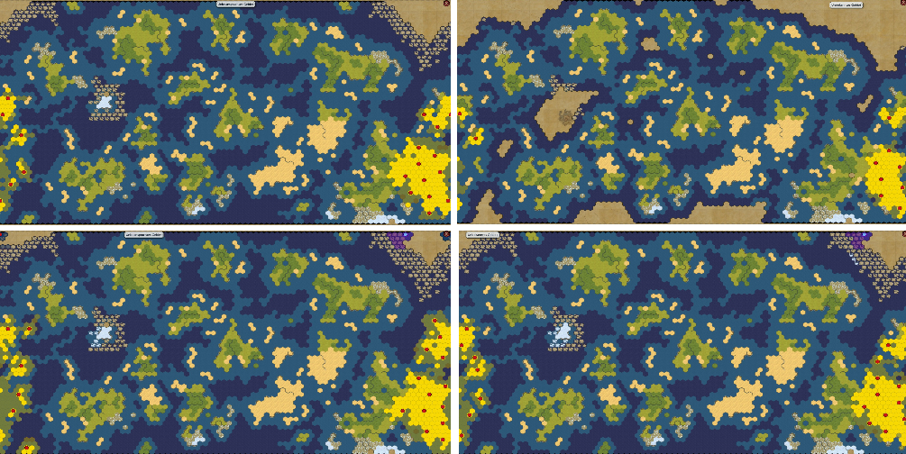 Eine Übersicht über die vier verschiedenen Reiche auf denselben Kontinent mit Hilfe der Weltkarte, der führende des Kontinentes rage ist unten rechts zu sehen. Im Spoiler folgen dann weitere Bilder von dem aufgebauten Reich: