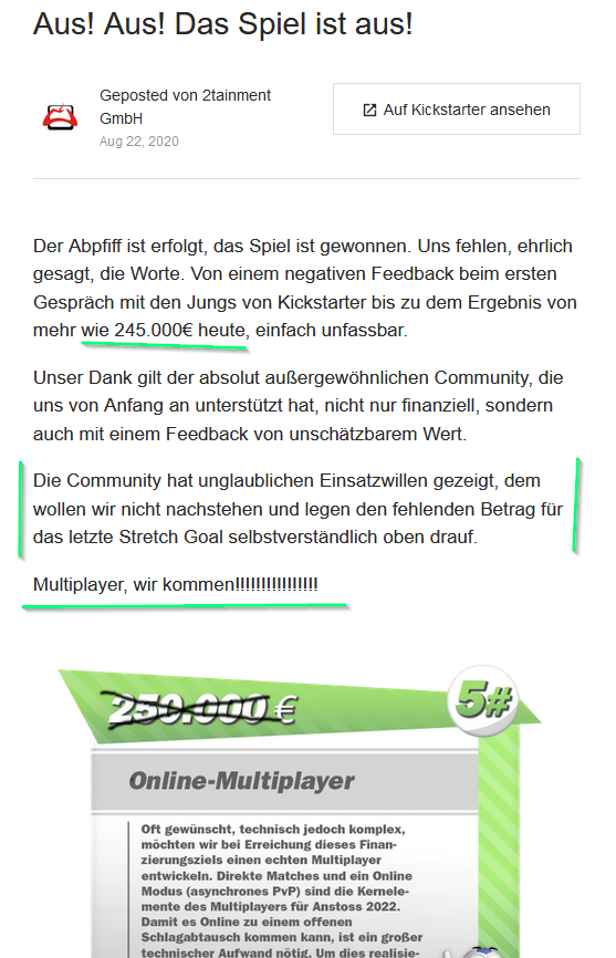 Die nächste Stufe wurde erreicht. Mal sehen, ob auch am Ende der Kampagne alle Konten gedeckt sind.