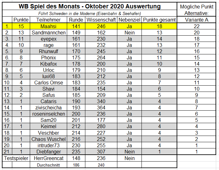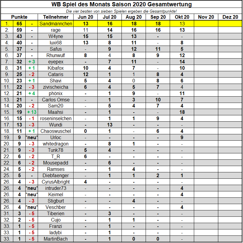 Einsendeschluss ist der 01.11.2020 - 23:59 Uhr! Saves, die nach Einsendeschluss eintreffen, werden u.U. ignoriert, egal ob die Auswertung schon durch ist oder nicht.