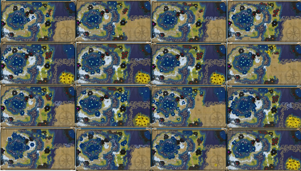 Als Nächstes kommt die Forschung bzw. Heilige Stätten. Für die Forschung gucke ich auf Inselkarten gerne nach Riffen. Dort sind Berge eh rar gesät und können im Anschluss für die heiligen Stätten genutzt werden.