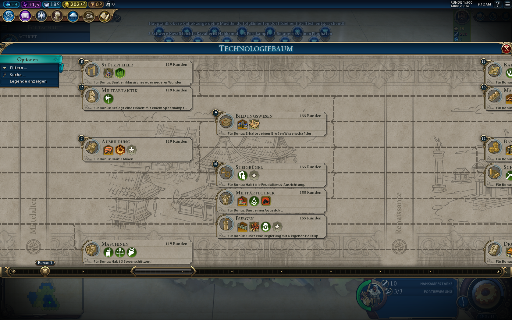 9) Mit den Stadtstaateinheiten freie Einheiten umbringen für die Regierungskarte, wo man Geld bekommt für Einheiten aus vorherigen Zeitaltern