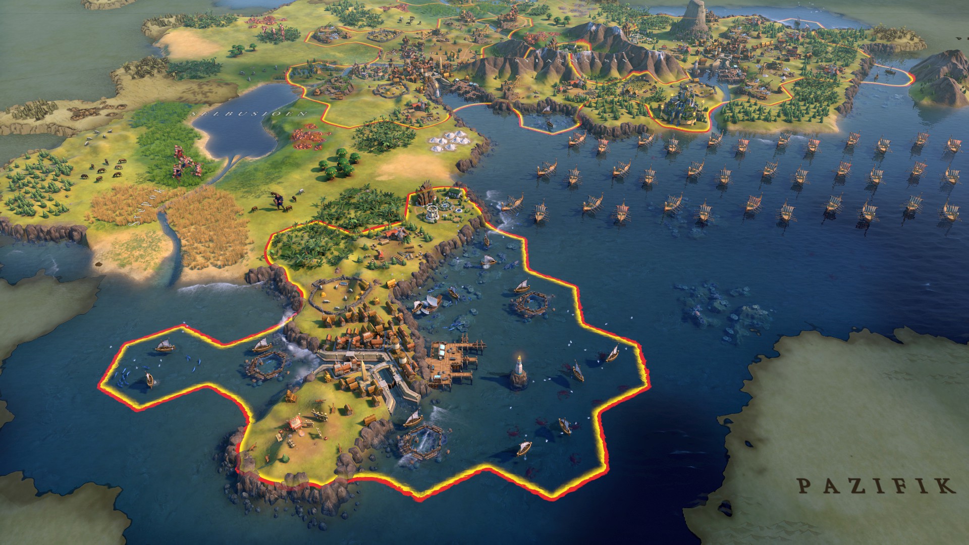Habe zu Beginn auch erstmal alles auf Stadtwachstum gesetzt und eine Religion mit Arbeitsethik und Versammlungshäuser gegründet, diese aber nicht weiter verbessert. Magnus in der Hauptstadt zur Siedlerpumpe entwickelt und vor allem die Produktion durch Modernisierungen versucht zu erreichen. Da ich nur 2 Städte am Meer hatte, waren auch direkt 2 Städte für die Produktion von Bezirken raus, da diese sich voll auf die Langboote fokussiert haben (ob sich die 3 Extrapunkte nachher lohnen
