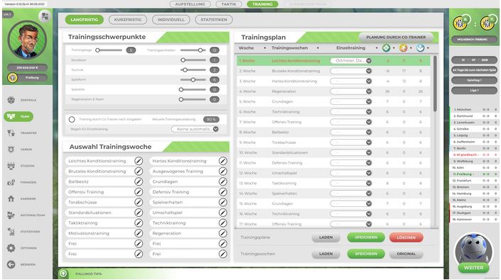 Das Training kann durch den Co-Trainer nach vom Spieler vorgegebenen Trainingsschwerpunkten automatisiert werden.
