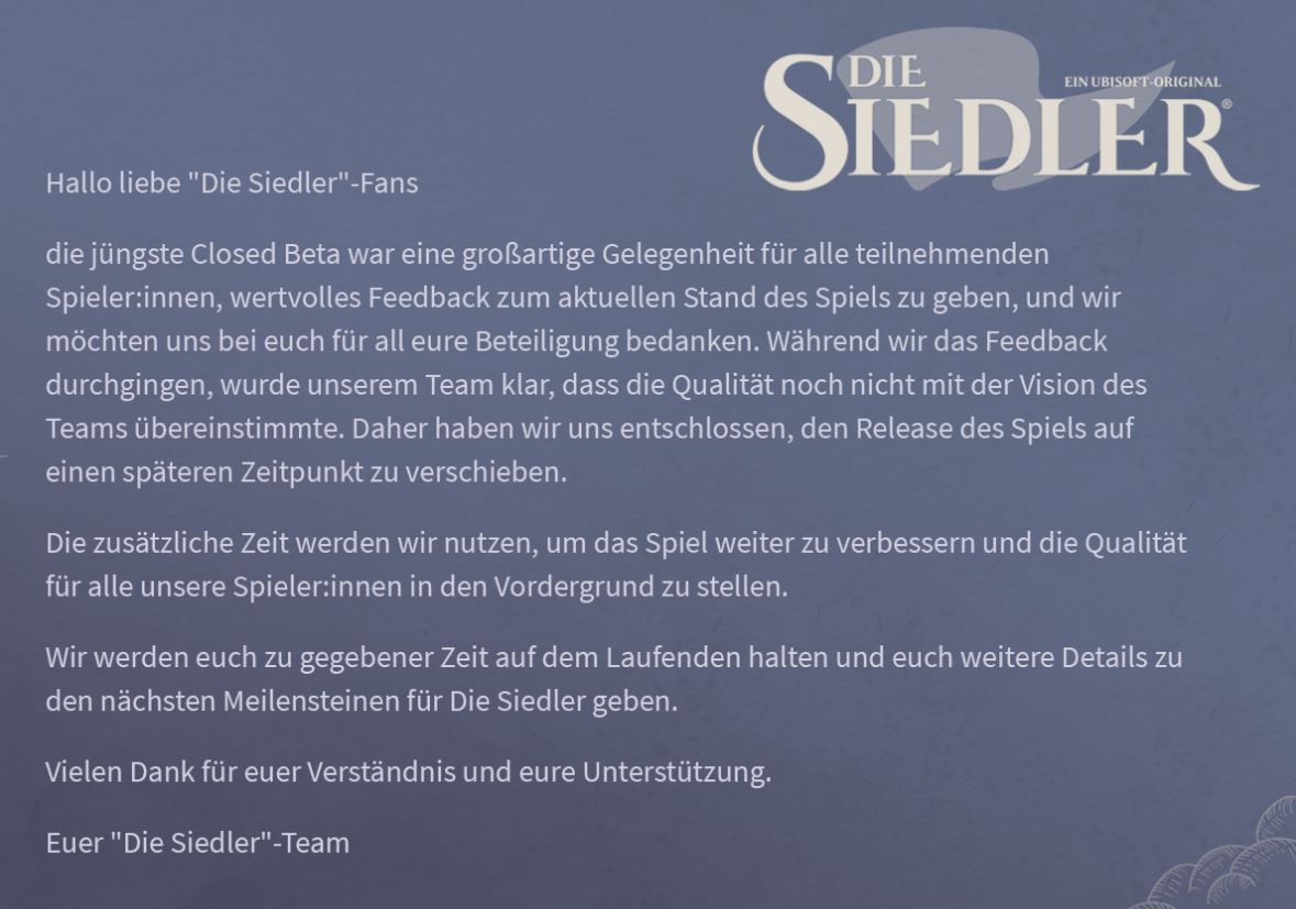 Das Release von Die Siedler ist nach dem Feedback-Desaster auf die Closed Beta erneut verschoben worden.