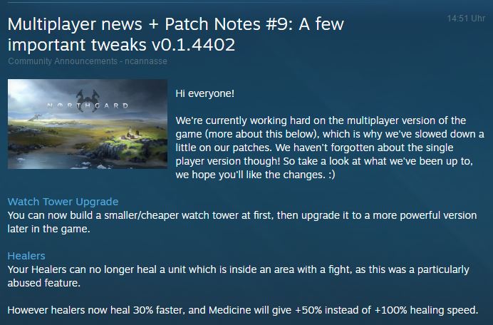 Die Entwickler arbeiten weiter fleißig an der Komplexität und Balancing des Spiels. Das gefällt mir!
