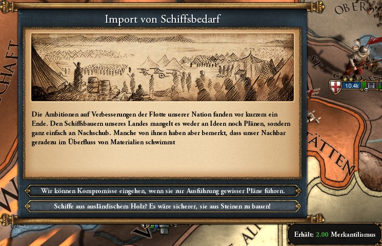 Mitte des Jahres 1597 versuchen ausländische Kaufleute lokale Unternehmen mit unfairen Mitteln zu schädigen. Dies können wir selbstverständlich nicht gestatten. "Schützt den Handel um jeden Preis! Auch wenn ihr dafür diese aragonesischen Hunde aus dem Land werfen müsst!", befahl der Erzbischof ungehalten.