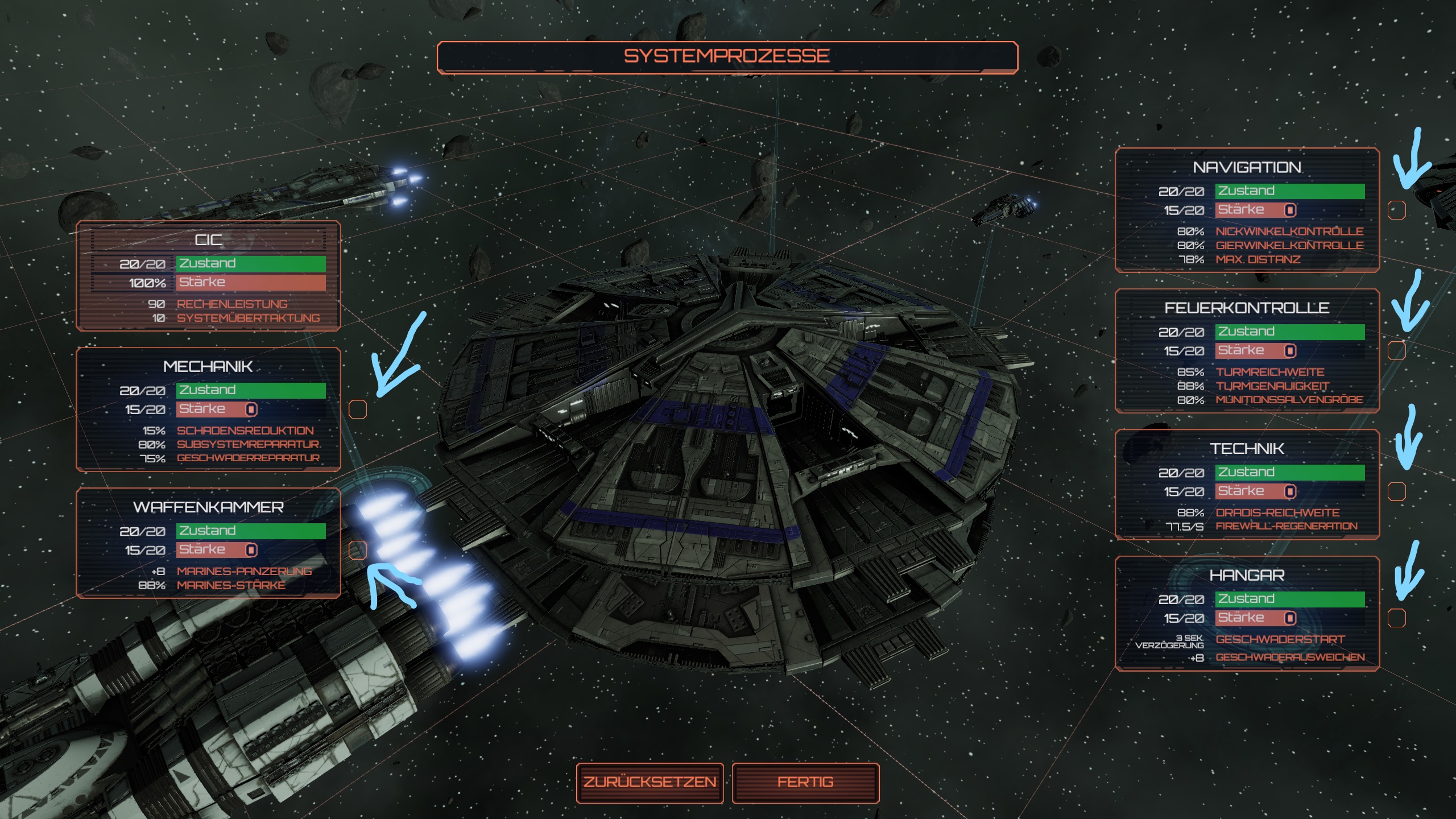 Genau wie in Teil 3 verzichte ich auch hier darauf wie jedes einzelne Subsystem und Waffensystem genau auf welche Rechenleistung reagiert und werde nur die nochmals erwähnen, die vom Standard abweichen.