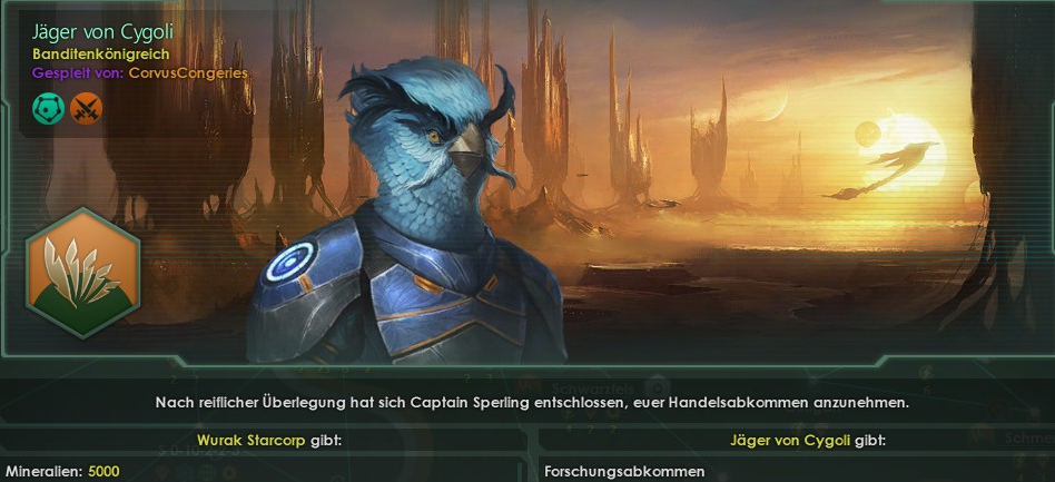 "Erneut gibt es viel von unseren Entdeckern zu berichten. Besonders Goldmagichsehr hat sich dieses mal selbst übertroffen. Sicherlich liegt es daran, dass er als Neuster der drei großen Entdecker noch liefern muss zu was er in der Lage ist. Und er hat geliefert. Im Tram Bodon - System hat er nicht nur die seltene Ressource Satramengas gefunden. Wissenschaftler Goldmagichsehr, ein selbsterklärter Gourmetkoch und Geschichtsfan, behauptet eine wichtige Entdeckung gemacht zu haben. Eine chemische Verbindung in den oberen Eisschichten mehrerer Regionen von Tram Bodon VII ist angeblich eng mit dem wurakischen Stellarsalz verwandt, einer wichtigen Zutat vieler traditioneller wurakischer Gerichte. Auf Wurak Gar hatte man es als erschöpft betrachtet. Schon lange ist spekuliert worden, dass das wurakische Stellarsalz auf unserer Heimatwelt ursprünglich gar nicht vorkam, sondern vor langer Zeit dorthin gebracht worden war. Die Entdeckung von Goldmagichsehr auf Tram Bodon VII scheint diese Theorie zu unterstützen. Allerdings verlässt er sich zum Beweis der salinischen Verbindung stark auf Eigenschaften, die in uralten Kochbüchern aus der Zeit vor der modernen Chemieforschung beschrieben werden.