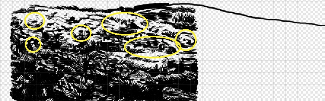 Aber nein, ich habe kein Männchen mit verbundenen Augen, Fabeltier, lachendes Gesicht oder was auch immer eingebaut. Das sind Zufallsprodukte und wohl auch davon abhängig, ob man sich auf die schwarzen oder die weißen Bereiche konzentriert.