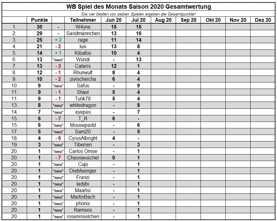 Die Auswertung des Spiel des Monats Juli 2020