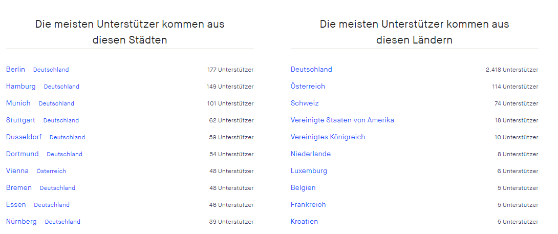 Sehr interessan finde ich aus welcher Region die Unterstützer kommen. Es gibt sogar 18 Personen aus den USA. :YMCOWBOY: