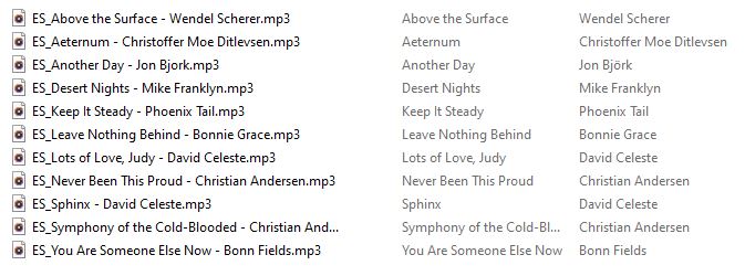 Ich bin jetzt ein paar Mal auf die Musik angesprochen worden, die ich beim Stream unterlegt habe. Unten ein Bild, das Titel und Interpreten auflistet. Alle Titel sind von Epidemic Sound. Bitte beachtet, dass man eine Lizenz braucht, um diese Titel öffentlich wiederzugeben.