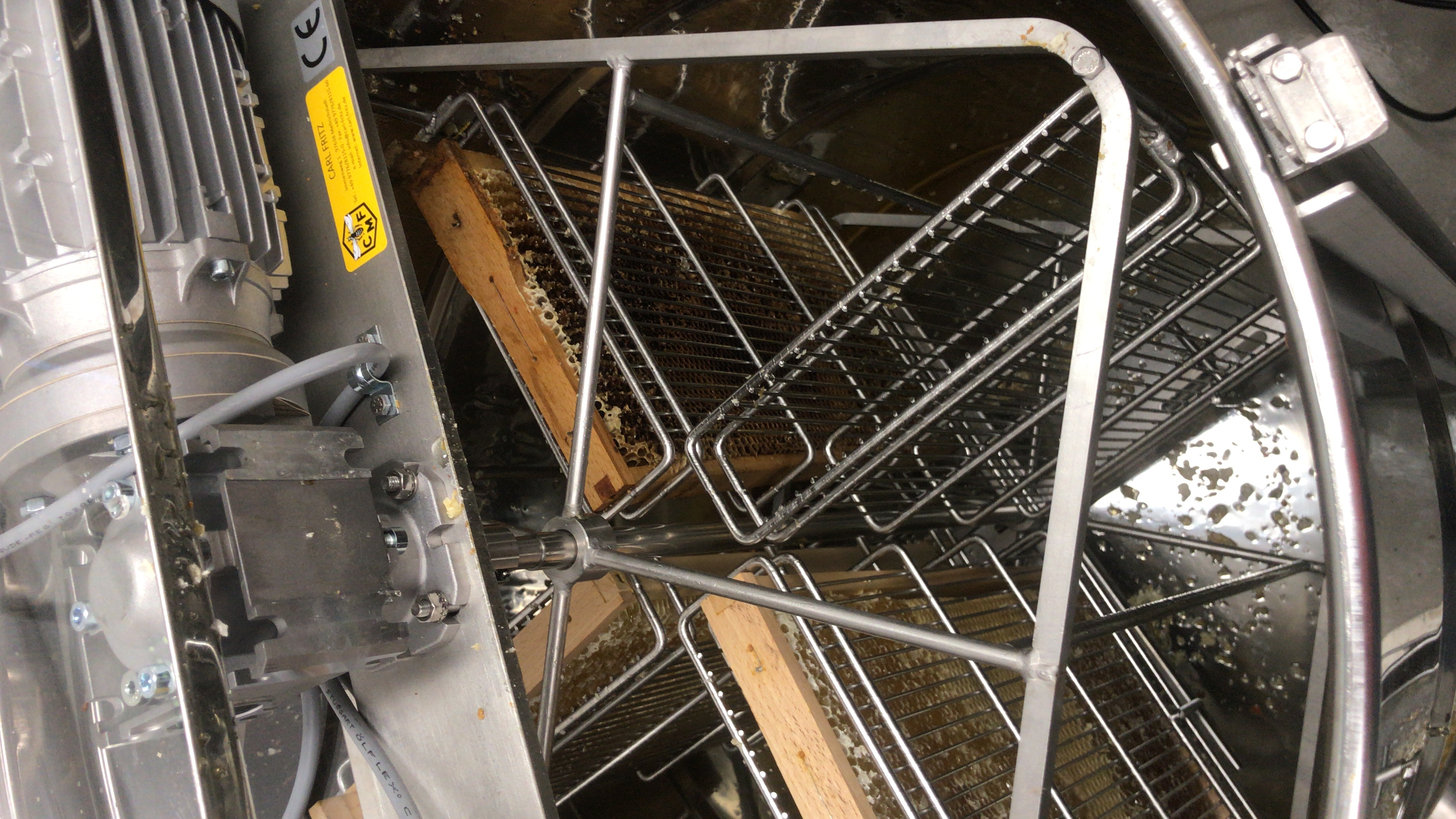 Allerdings kann ich über einen Freund im Imkerverein diese oben mit nutzen. 4 Wabenschleuder, elektrischer Antrieb mit selbst wende Mechanismus.
