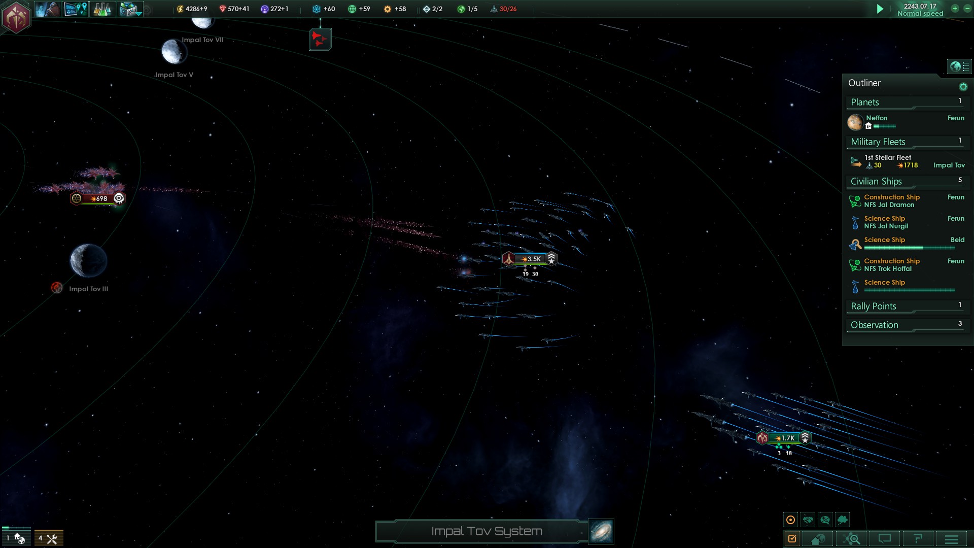 Nach einigen größeren Gefechten, bei denen die Ammatar-Flotte vorbildlich in vorderster Reihe gekämpft hatte, konnte das gesamte Impal Tov System von diesen Kristallwesen befreit werden. Die eigenen Verlusten waren bei unser beiden Reichen zum Glück nur sehr gering.