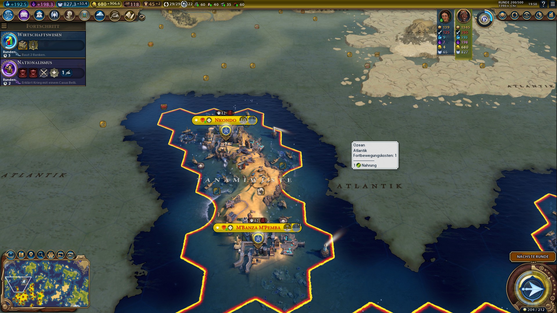 Wenn ich es heute nochmal spielen würde, würde ich mehr Städte bauen - ich war da irgendwie sehr sparsam und mir ist erst später im Spiel aufgefallen, dass da noch Platz ist, den man nutzen könnte... und die kleinen Inseln habe ich zwar entdeckt nach der Entdeckung der Kartographie, aber ich konnte damit erstmal nichts anfangen, weil sie so klein waren. Jede Menge verschenktes Potential wie ich hier jetzt gelesen habe ;)