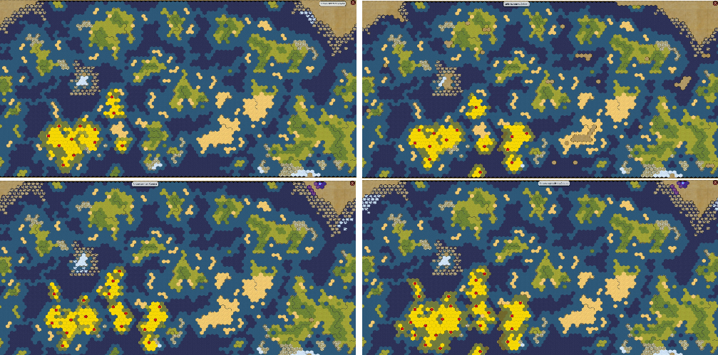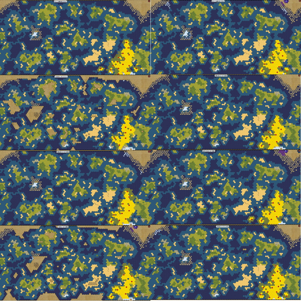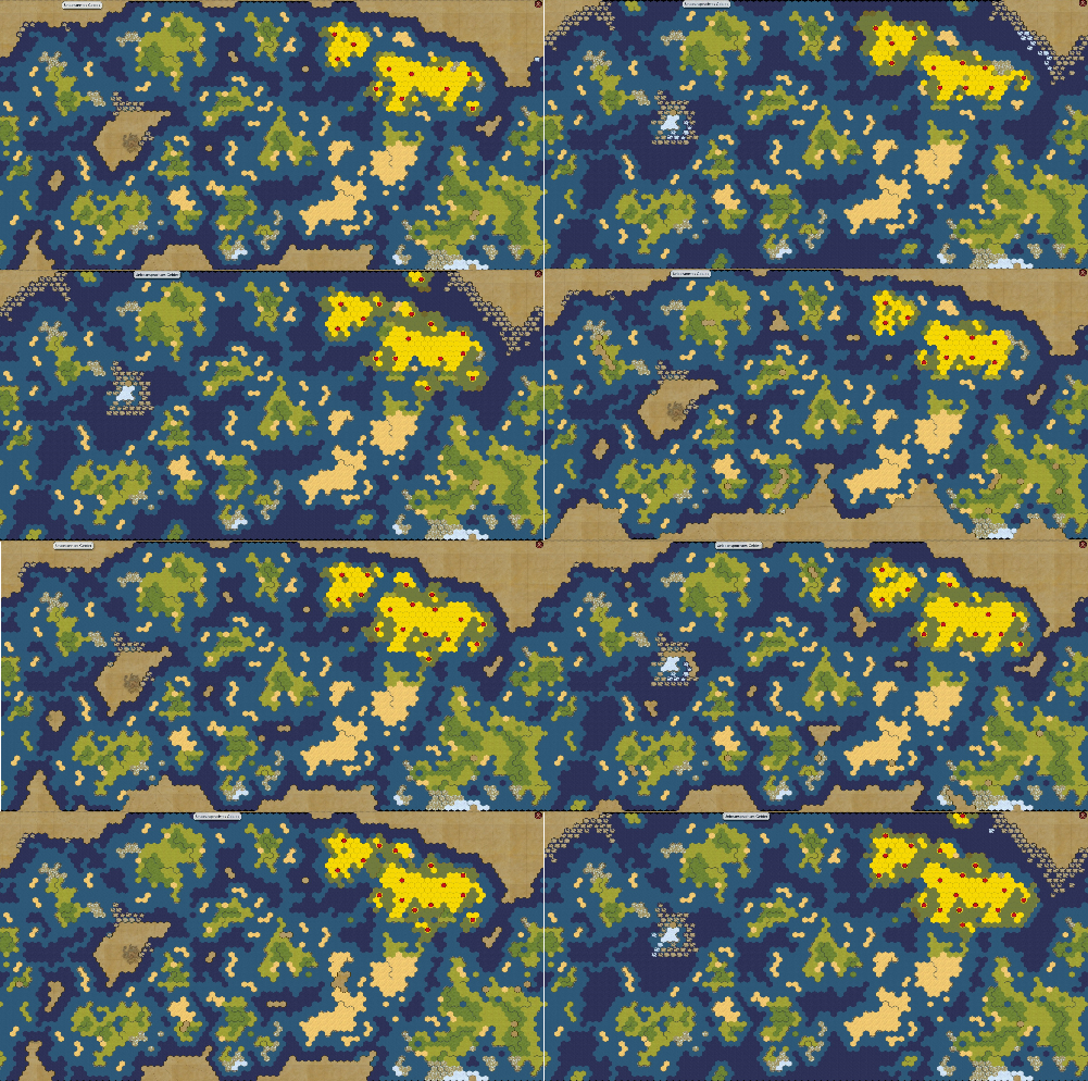 • 3) auf dem Startkontinent zu siedeln und hoffen, dass der Gewinn an Runden groß genug ist, um den Nachteil der kleineren Landmasse auszugleichen.