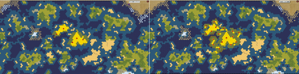 • 1) Mit dem Siedler ausharren und die anderen Einheiten decken innerhalb der nächsten X Runden so viel Landfläche wie möglich auf, um sich dann für einen Kontinent entscheiden zu können